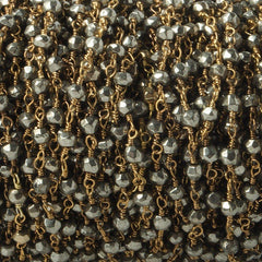 Beads measure about 4mm in diameter with about 35 beads per foot. These unique, lightly faceted matte pieces show off an earthy green color palette that looks great paired with our signature gold plated handwrapped chain. Fans of African Turquoise should jump on this stylish chain with an organic allure.