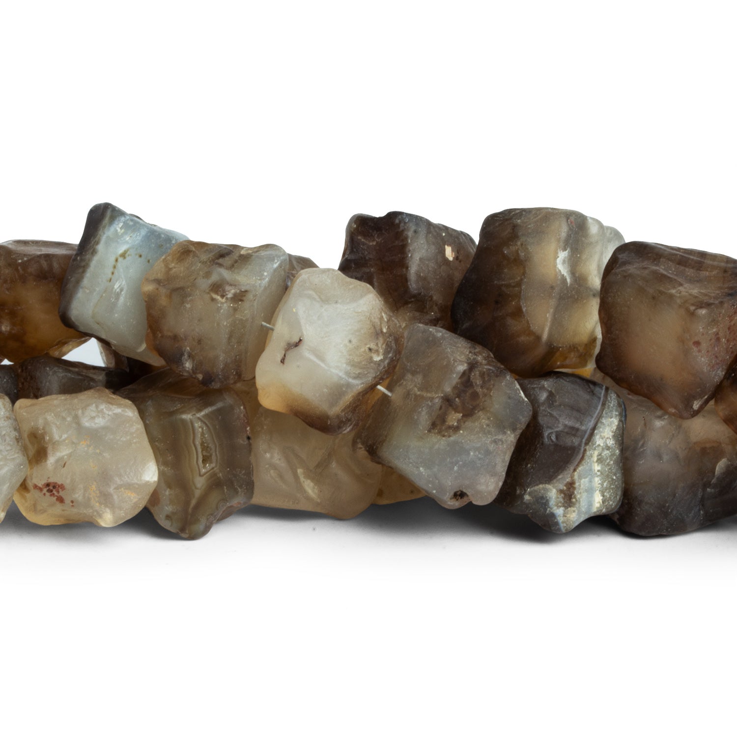 These Pecan Brown Agate Hammer Faceted Cube Beads bring an earthy richness to your jewelry designs. Each bead showcases the natural beauty of agate with warm brown hues blended with subtle cream, gray, and caramel undertones. The hammered faceting enhances their raw texture, adding dimension and a unique rustic elegance that stands out in handcrafted pieces.