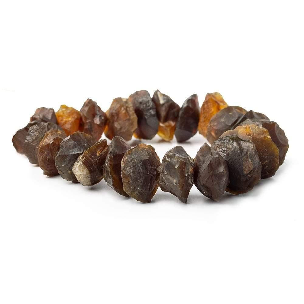 Dark Honey Colored Agate Hammer Faceted Discs measure approximately 15mm up to 17mm in diameter, have a vitreous luster, beads are chip faceted for a natural look, the stones are brilliant with milky quartz tones within the agate bodies, the bodies are semi-translucent, and the body colors are a slightly reddish dark cognac hue with natural internal characteristics.Hammer Faceted beads are faceted using the Ancient Technique of hand chipping the gemstone to create its shape, the gemstones have a natural appearance with crisp edges which are tumbled to smooth out any roughness on the edges, the stones are Translucent to Opaque in quality, the body colors can be natural or color treated to any hue in the rainbow, the gemstones present with the natural internal characteristics of the gemstones, the Hammer Faceted Tumbled gemstone group will have an edge with a melted appearance due to the secondary shaping after chip faceting, and this Hammer Faceted group show excellent weight, great presence for shape, have a great feel, and add unlimited color options.