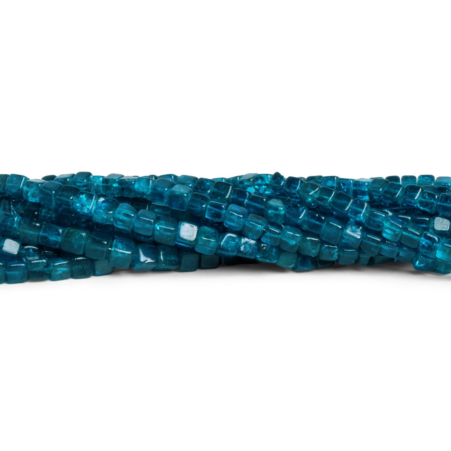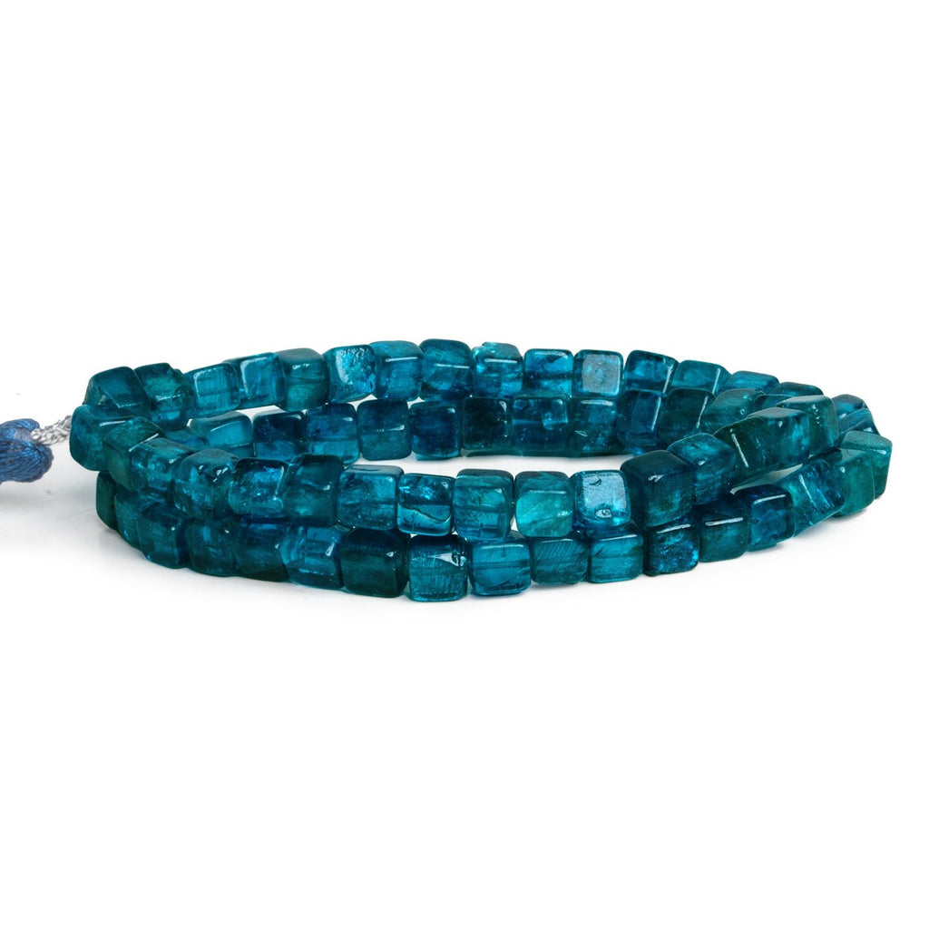 Beads range from about 4mm to 5mm in diameter. These gorgeous pieces put an electric blue color on full display with dark but translucent bead bodies with smooth polished faces. This Apatite is color enhanced to maximize its vibrant neon tone that is consistent across the strand. Imbue your designs with an eye-catching elegance with these alluring offerings, ideal for use in necklaces, earrings and more.