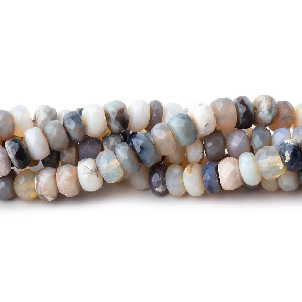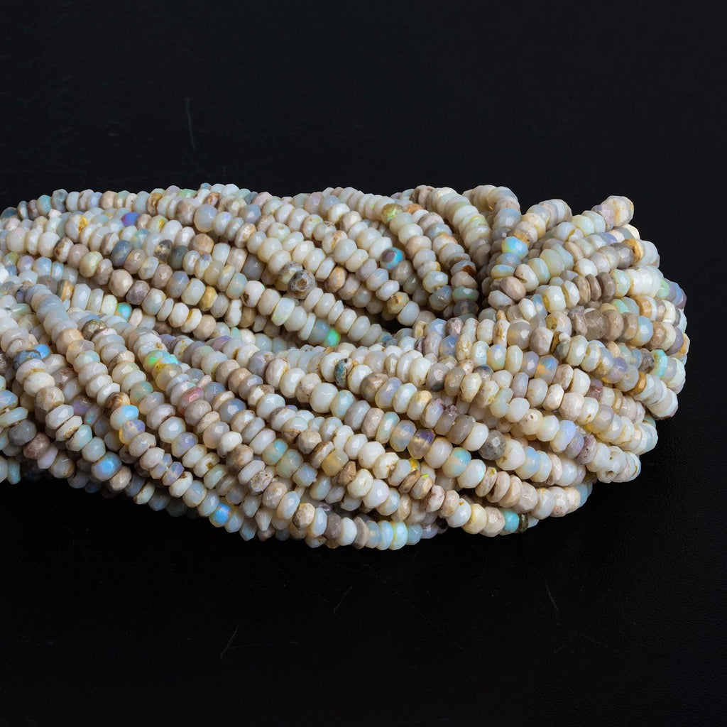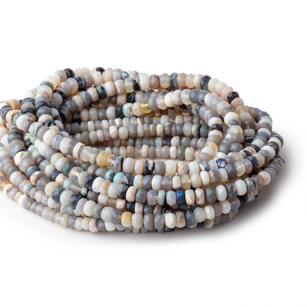 Opals are famous for their play of color, an effect that is caused by the internal structure of Opal beads. Unlike quartz, opal is not a crystal and is considered a mineraloid, a mineral-like substance without a crystal structure. Opals are made up of silica and water, and it is the high water content--up to 20% in some stones--that contributes to opal’s colorful show. Silica spheres inside the amorphous stone catch the light and reflect it back. The spheres are arranged in a lattice structure and the distance between the spheres determines what colors will be present in the stone. The brightness of the fire is graded on a scale of 1 to 5, with 5 being the brightest.