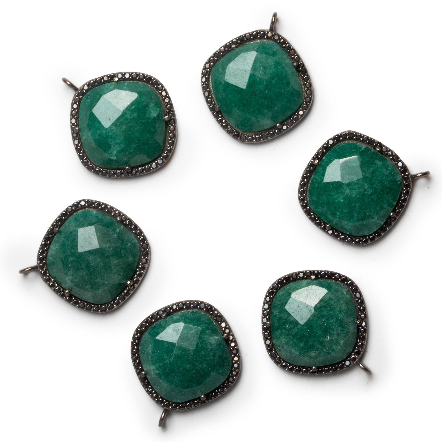 These striking pillow-shaped Aventurine pendants feature rich forest-green natural stone, softly faceted to catch the light while showcasing the stone’s subtle, cloudy depth and organic texture. Each stone is framed in a black gold–finished bezel and surrounded by a delicate pavé halo of genuine black spinel, adding dark sparkle and dramatic contrast that really makes the green pop.
