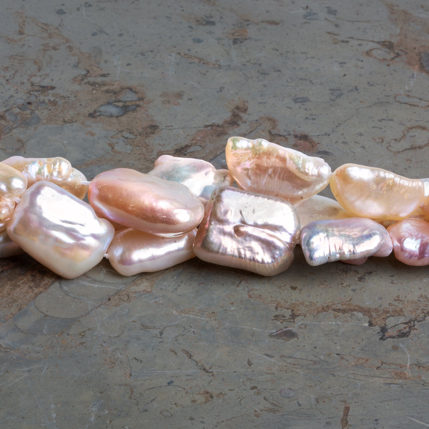 15x11mm Peach Biwa Pearls 16 inch 27 beads