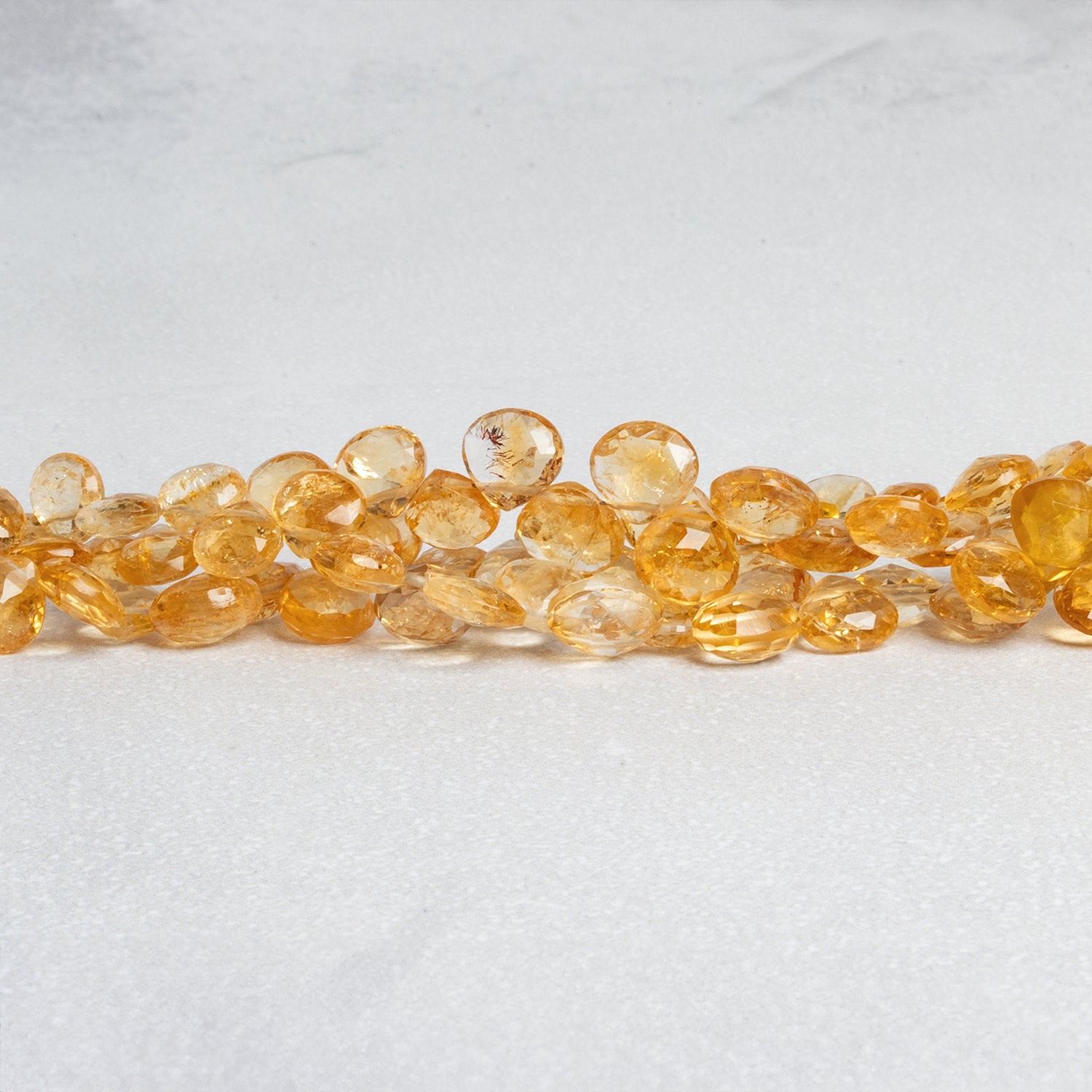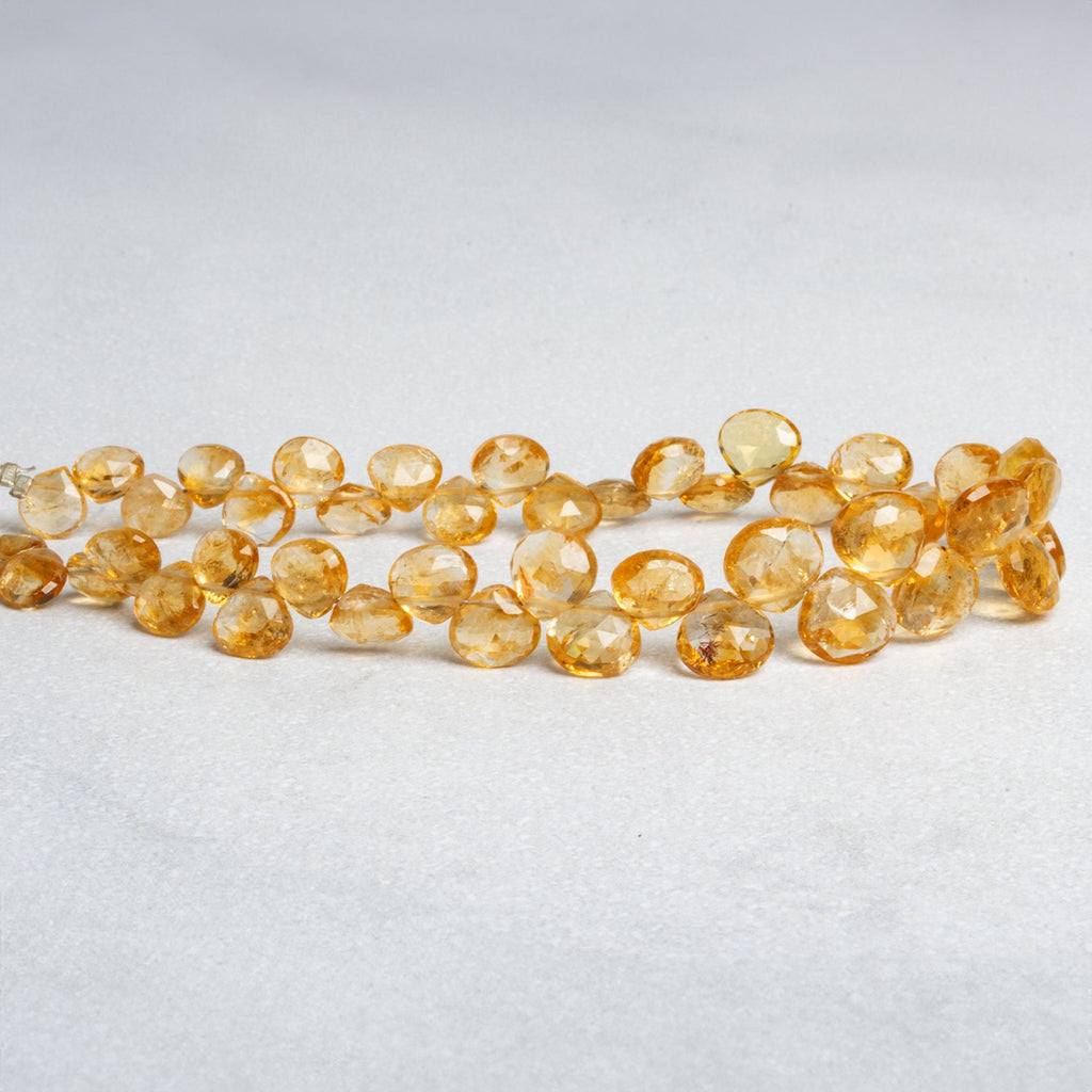 Beads measure about 5mm to 8mm in diameter. Beads measure about 5mm to 8mm in diameter. These stunning beauties show off a light and rich Citrine color palette that is sure to catch eye in all your Jewelry Designs. Fans of Citrine will find these hearts ideal for use in necklaces, earrings and much more.