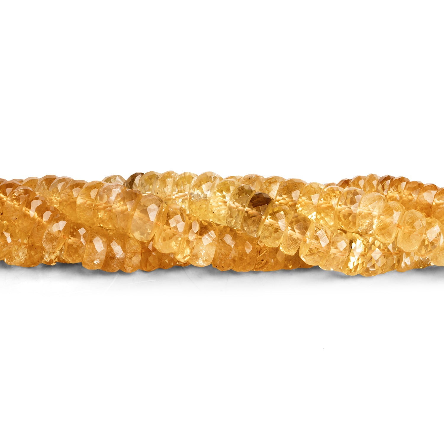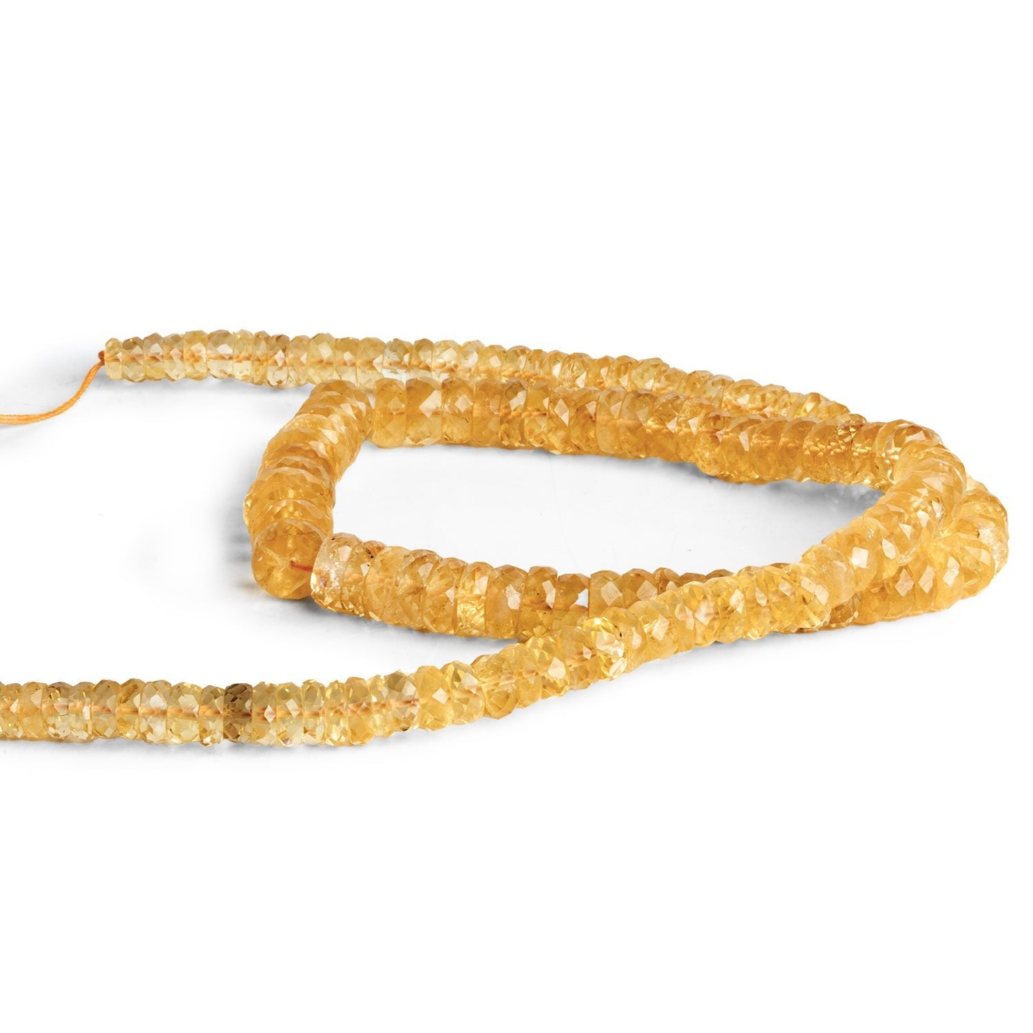 Beads measure about 5mm to 9mm in diameter. These gorgeous pieces show off a light and vibrant color palette that is consistent across the strand . Expect an exquisite faceting that is sure to dazzle with myriad sparkles at every turn. Bead bodies are translucent with excellent, near flawless clarity in most cases. Fans of Citrine have found the perfect ingredient to their most elegant Jewelry Designs with our Faceted Heishis, ideal for use in necklaces, earrings and more.
