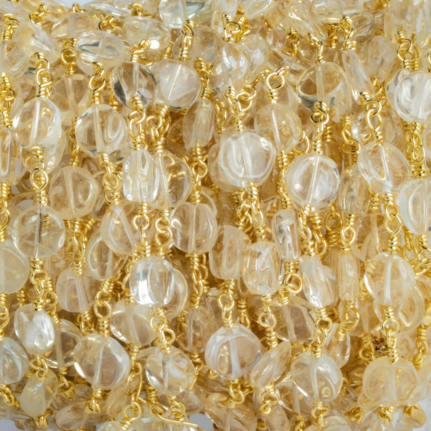 6-7mm Citrine Plain Coin Gold Chain 27 beads