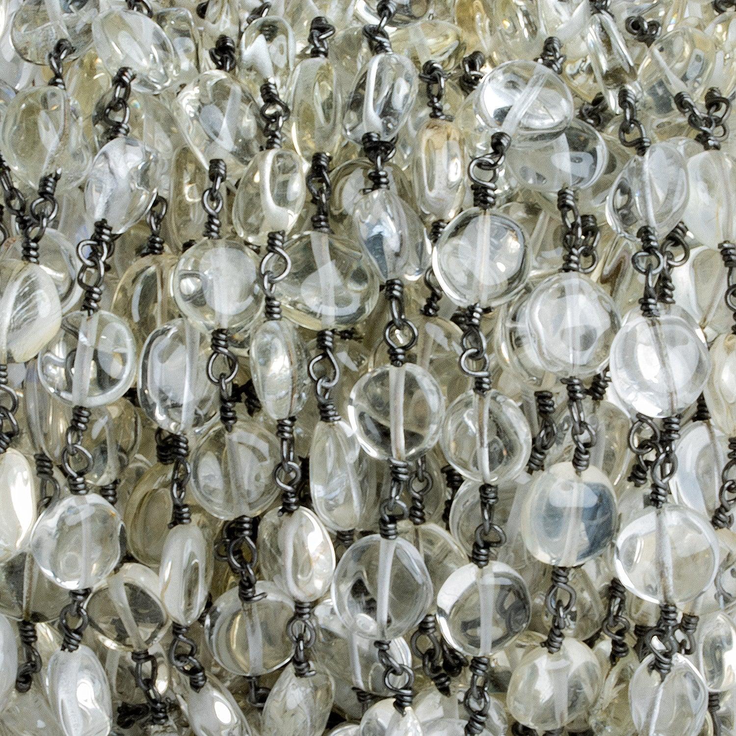 7mm Citrine Plain Coin Black Gold Chain 24 beads