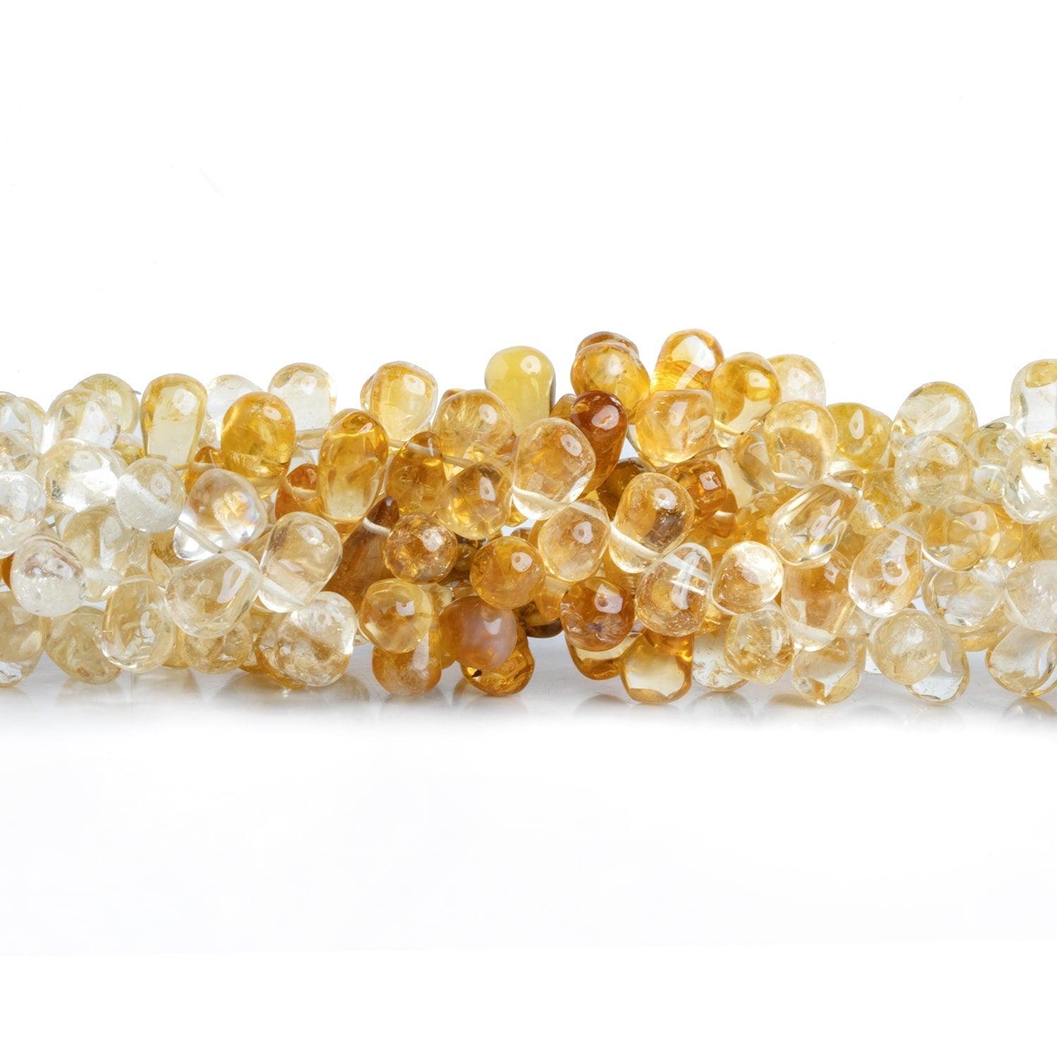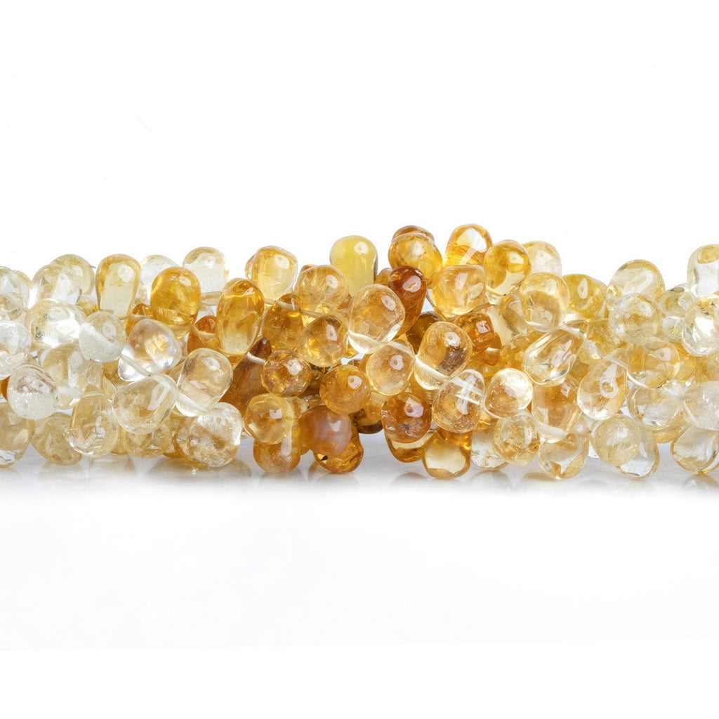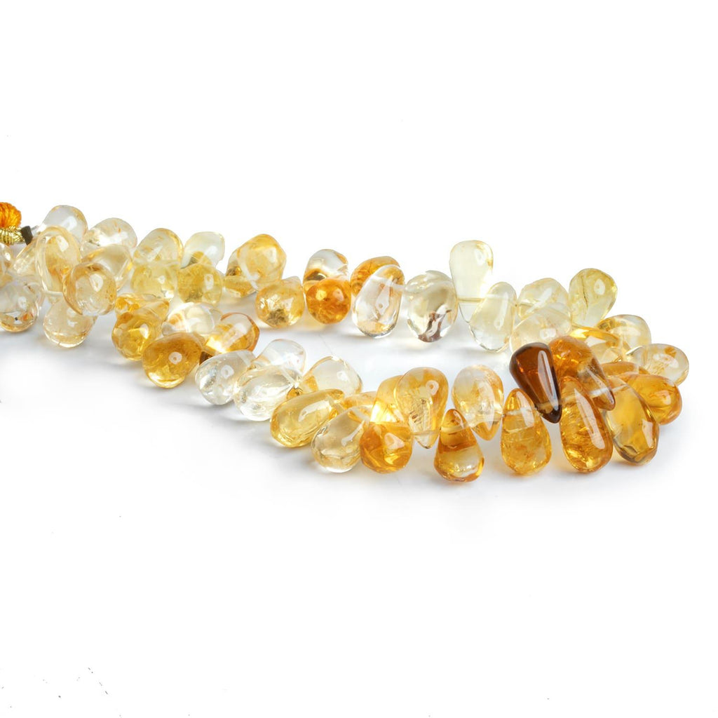 Beads range from about 7x5mm to 10x6mm. These strands are curated for a shaded gradient from a very slight yellowish tint, through Citrine tones to a darker reddish tone. Expect some variation in size & shape on the strand.