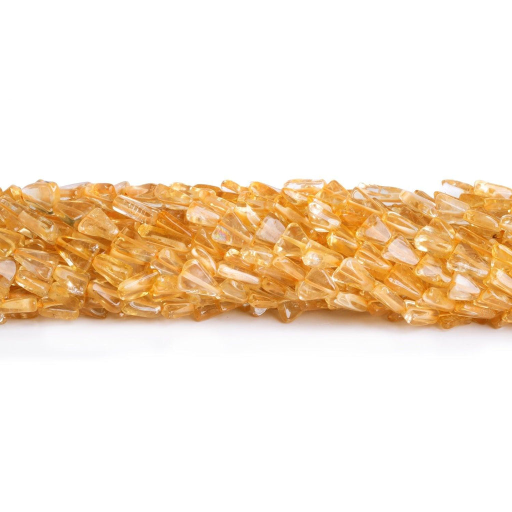 Each Citrine Triangle Bead is crafted to a rough, elongated triangle shape with a clear body and moderately saturated color. Citrine is cherished for its warm and sunny hues. Its golden yellow color is reminiscent of the sun's glow, bringing joy, positivity, and prosperity into your life. When incorporated into jewelry, Citrine Triangle Beads infuse your creations with a sense of optimism and vitality.