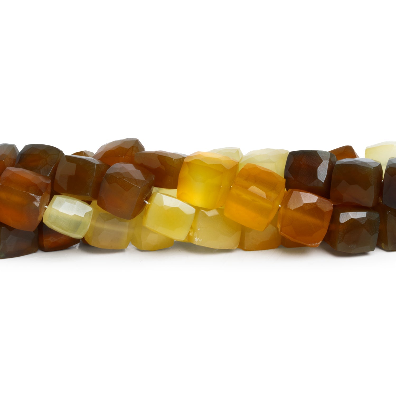 Beads range from about 8mm to 10mm in diameter. These richly colored, specially curated strands feature colors from caramel and amber tones shaded through a pale lemony yellow. Seekers of the full range of Yellow Chalcedony hues should jump on these striking offerings, perfect for necklaces, earrings and more.