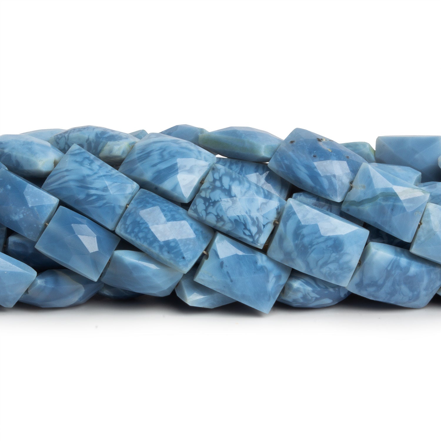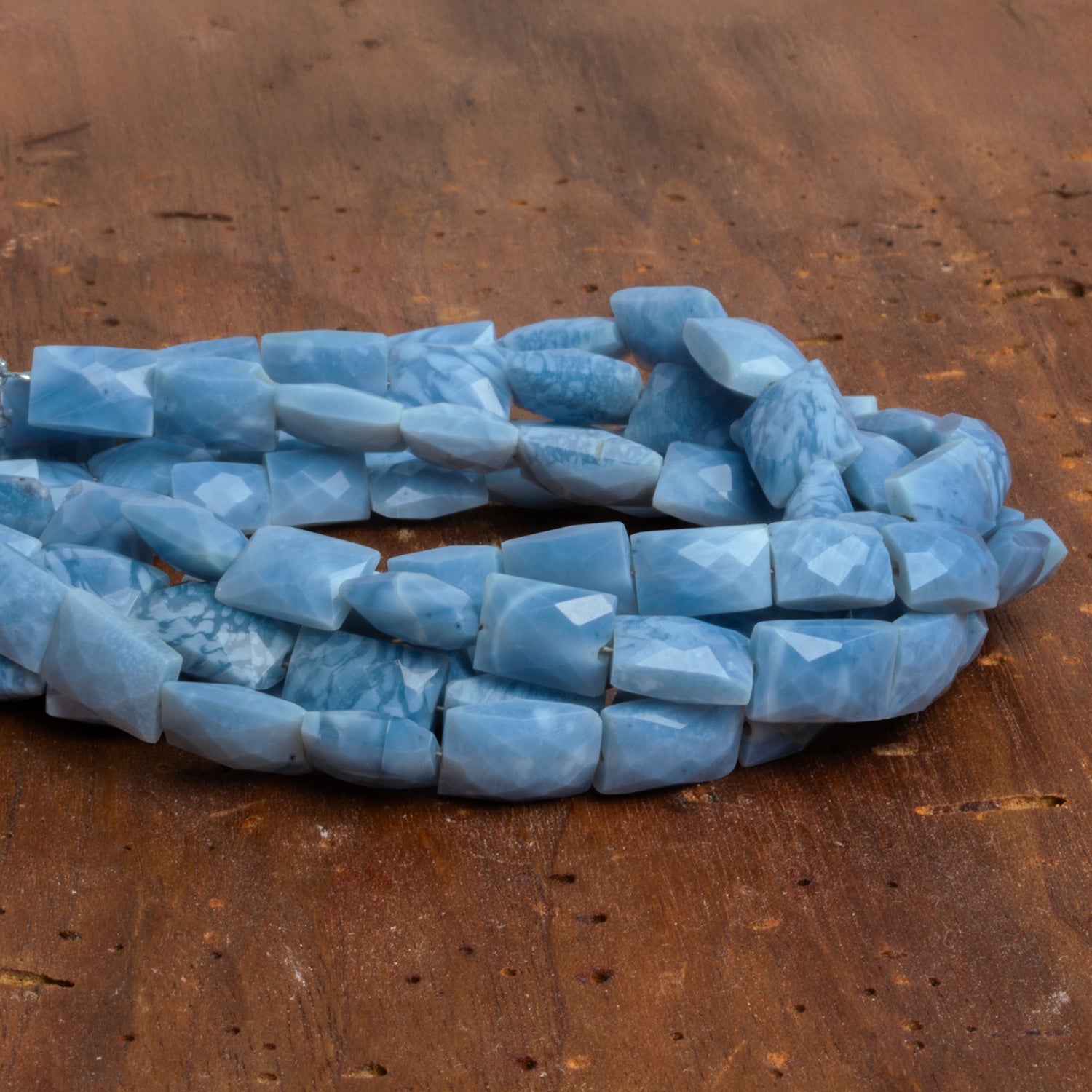 These Owyhee Denim Opal beads are expertly cut into faceted rectangles, highlighting their unique blend of sky-blue and stormy denim hues. Ranging in size from 8x6mm to 13x9mm, each bead reveals a striking interplay of natural patterns and subtle marbling, giving them an elegant depth and dimension. The facets catch the light beautifully, adding a refined brilliance to the gem’s naturally calming palette.