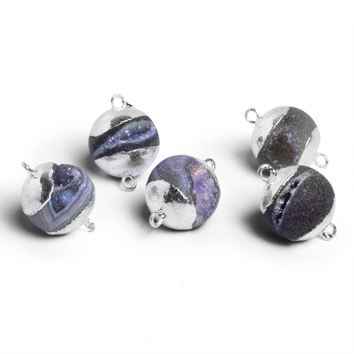 Perfect for jewelry design, these versatile connectors feature dual loops, making them easy to incorporate into necklaces, bracelets, or earrings. Their bold spherical shape and unique drusy character ensure that every piece crafted with them carries both contemporary style and organic allure.