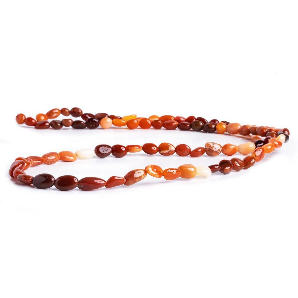 These natural Mexican Fire Opal nuggets average 7x4mm in size. Each bead exhibits the superior finish achieved through expert hand-polishing techniques, preserving the authentic character of this premium gemstone material.