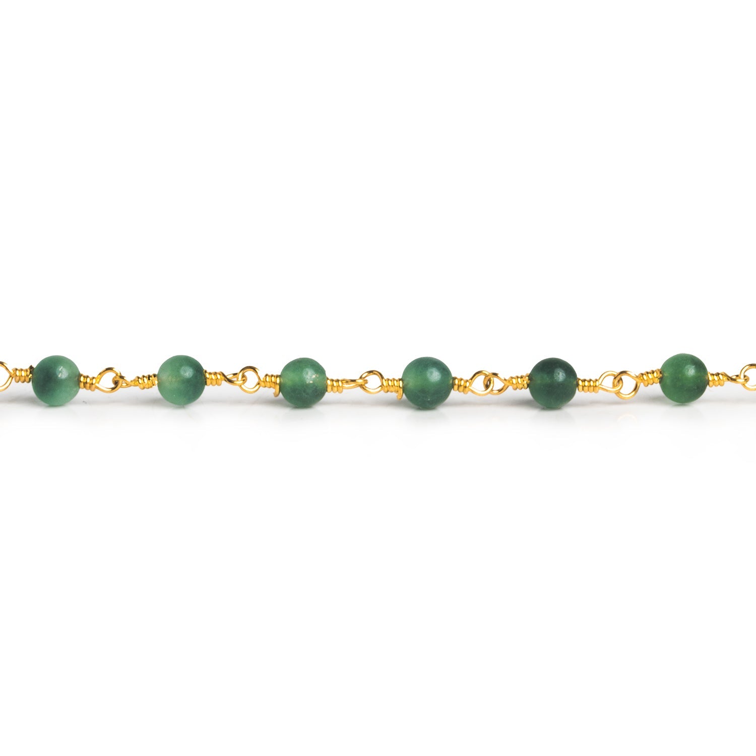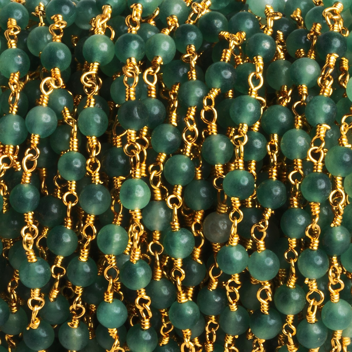 Beads measure about 4mm in diameter. This specially curated offering shows off a rich forest green hue. Add to this our signature gold plated handwrapped chain and you have a truly eye-catching option perfect for any Jewelry Design concept. Whether a statement necklace or dainty earrings, contemplate your next slate of creations with our Serpentine Round chain in mind!