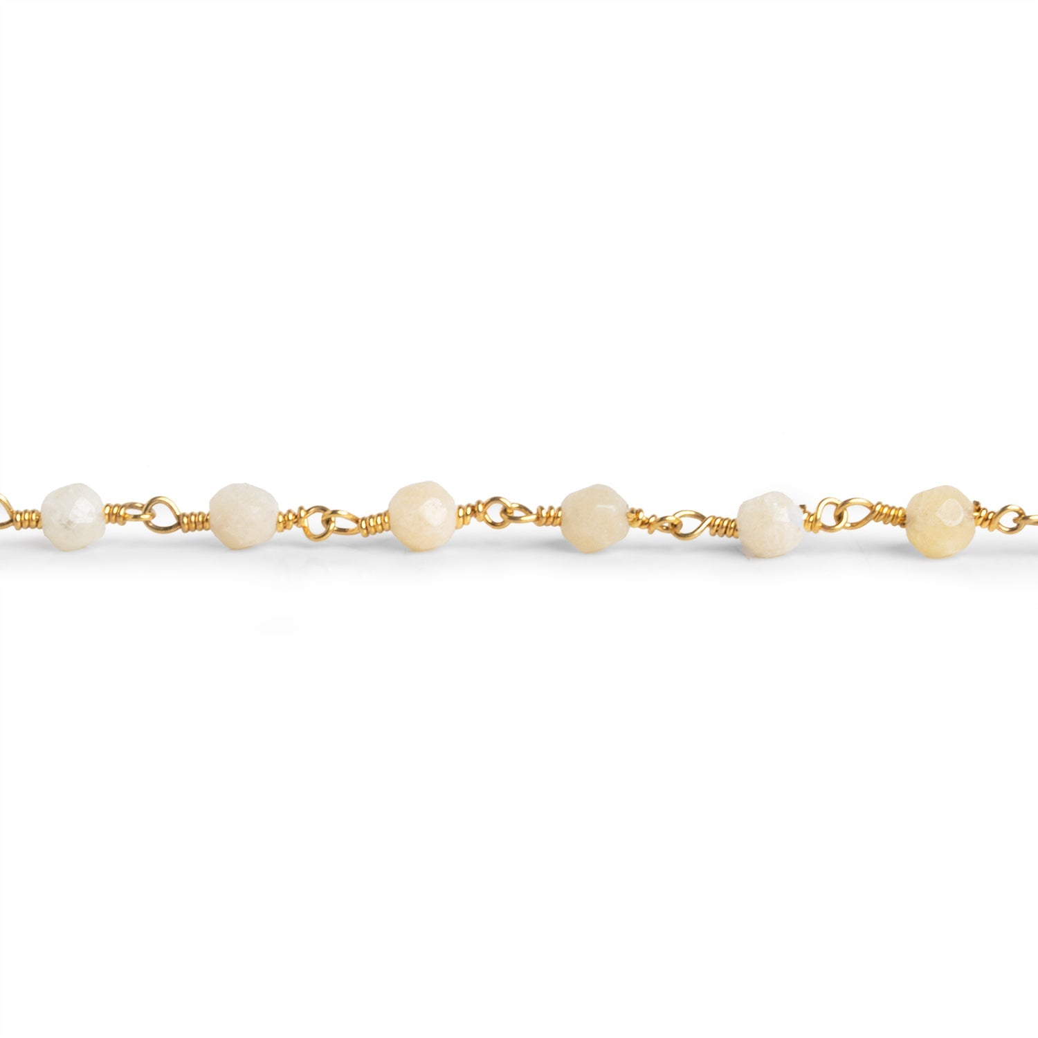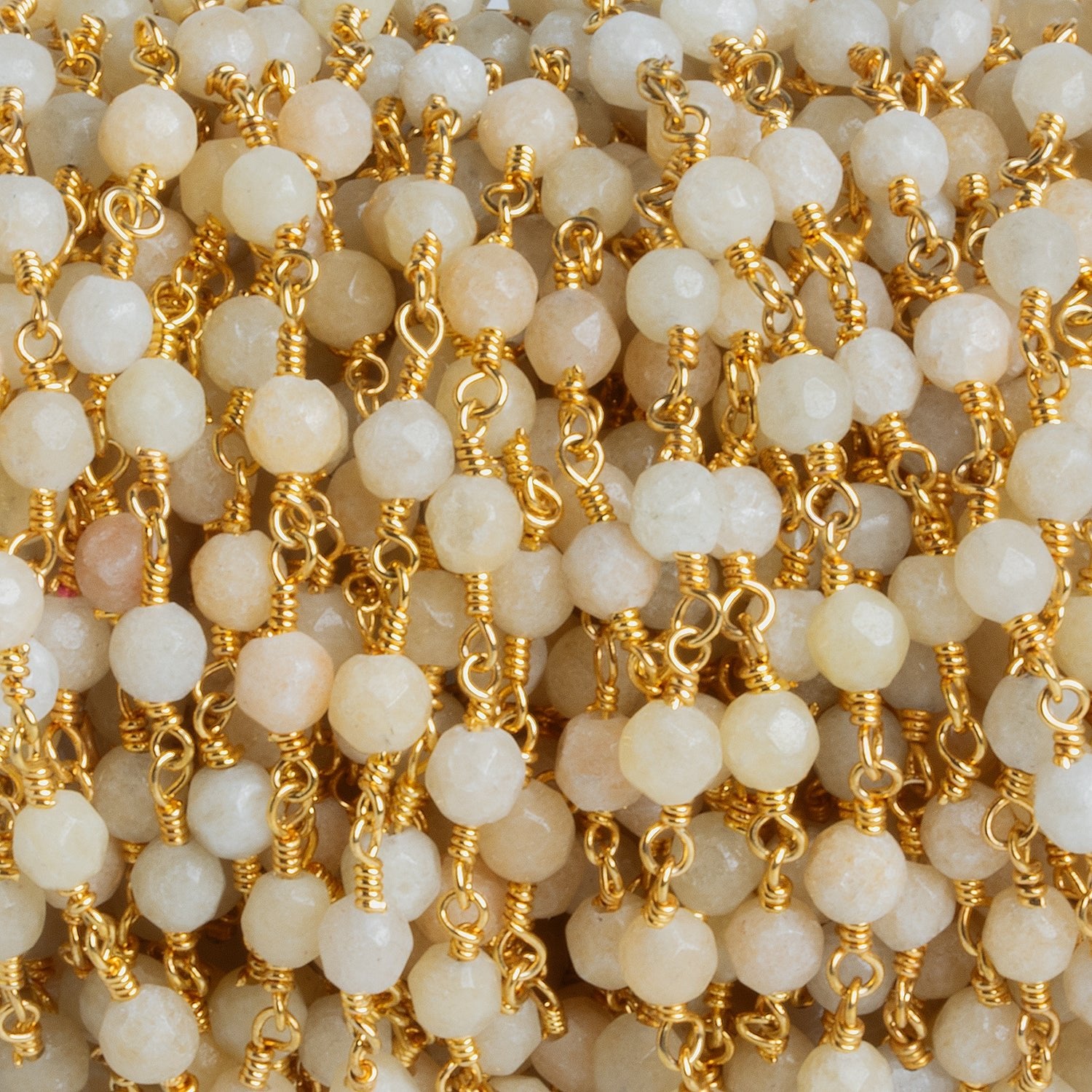 Beads measure about 4mm in diameter. This specially curated offering shows off a warm tan color palette on faceted bodies. Add to this our signature gold plated handwrapped chain and you have a truly eye-catching option perfect for any Jewelry Design concept. Whether a statement necklace or dainty earrings, contemplate your next slate of creations with our Tan Agate Round chain in mind!