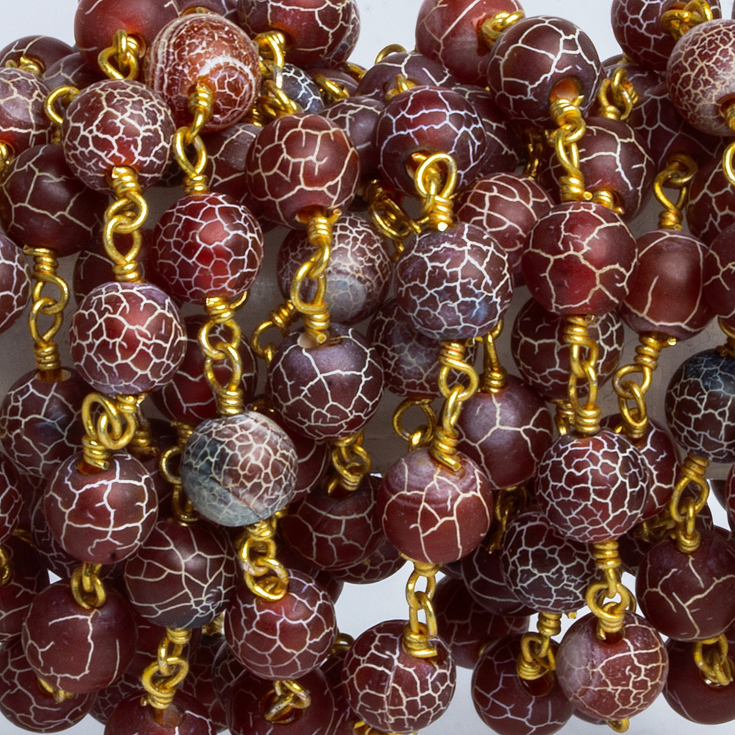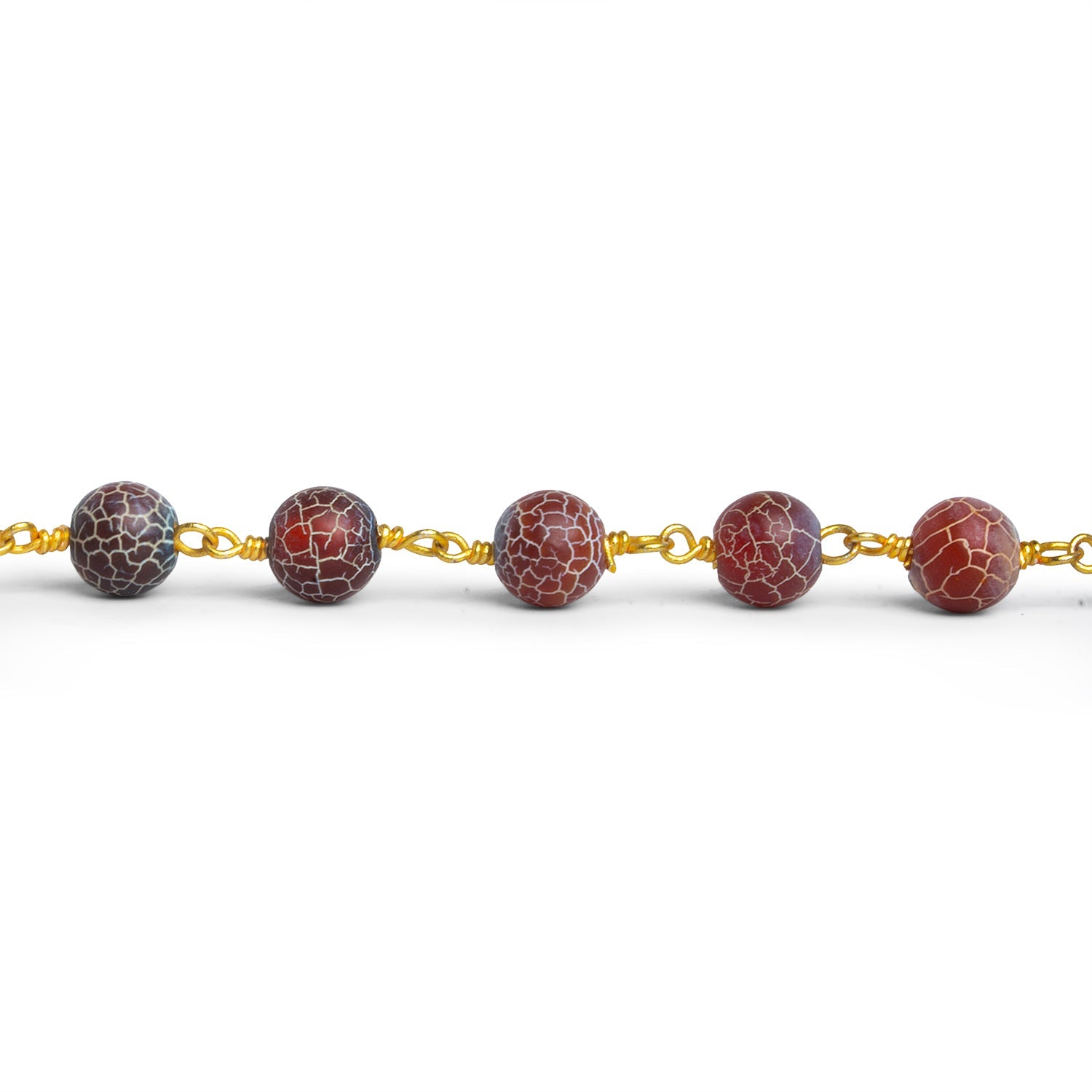 6mm Red Cracked Agate Round Gold Chain 27 Beads