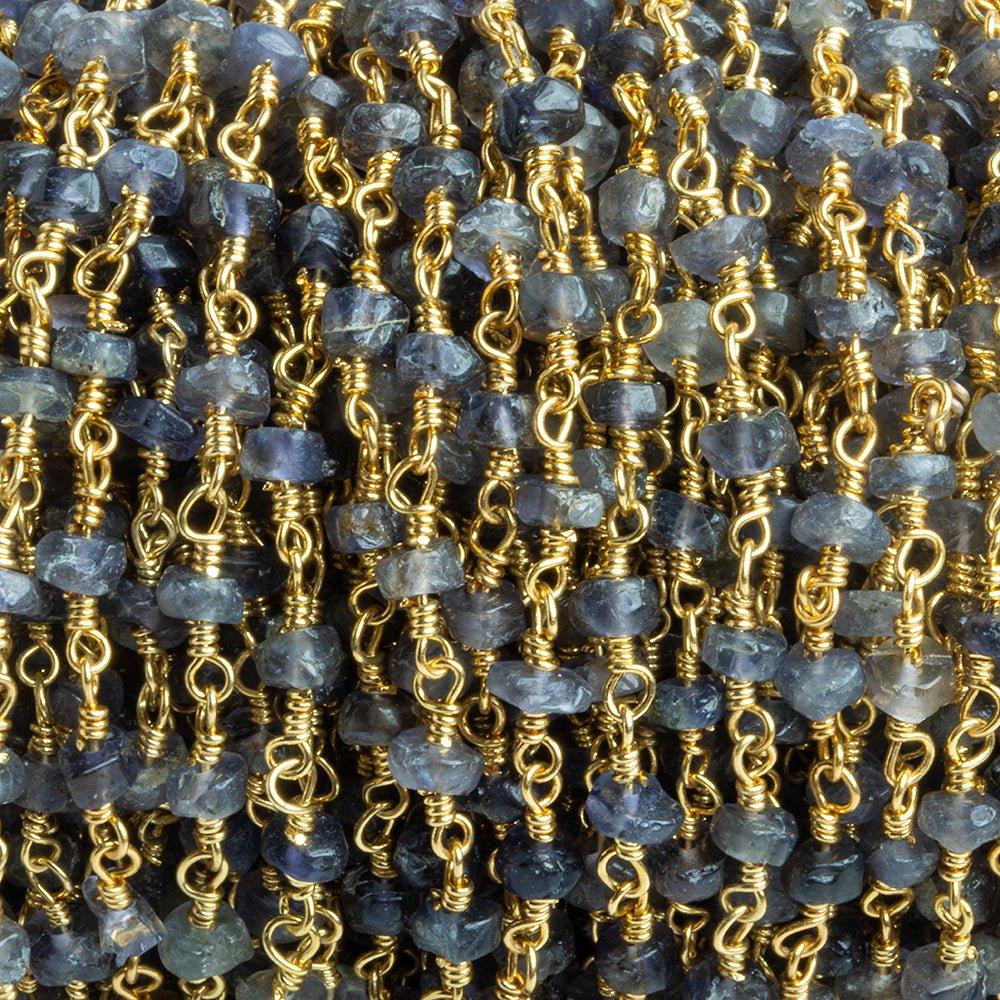 4mm Iolite Faceted Rondelle Gold Plated Chain by the Foot 37 pieces