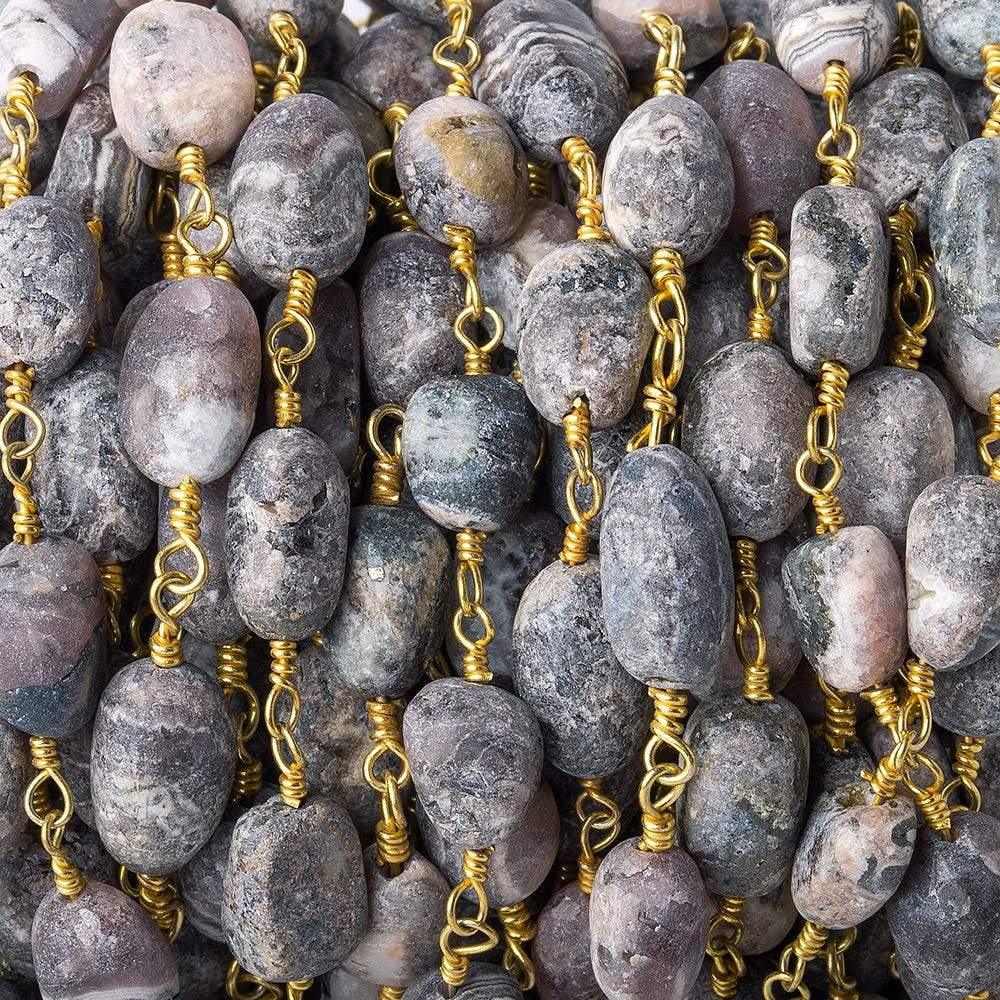 8x6-12x8mm Matte Chocolate Rhodocrosite plain nugget Gold plated Chain sold by the foot increments for this well crafted, hand wrapped looped link with our custom gemstones to Silver plated, Black Gold plated, or Gold plated wire for a finished jewelry look.