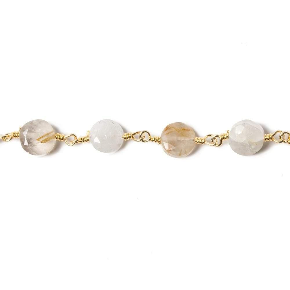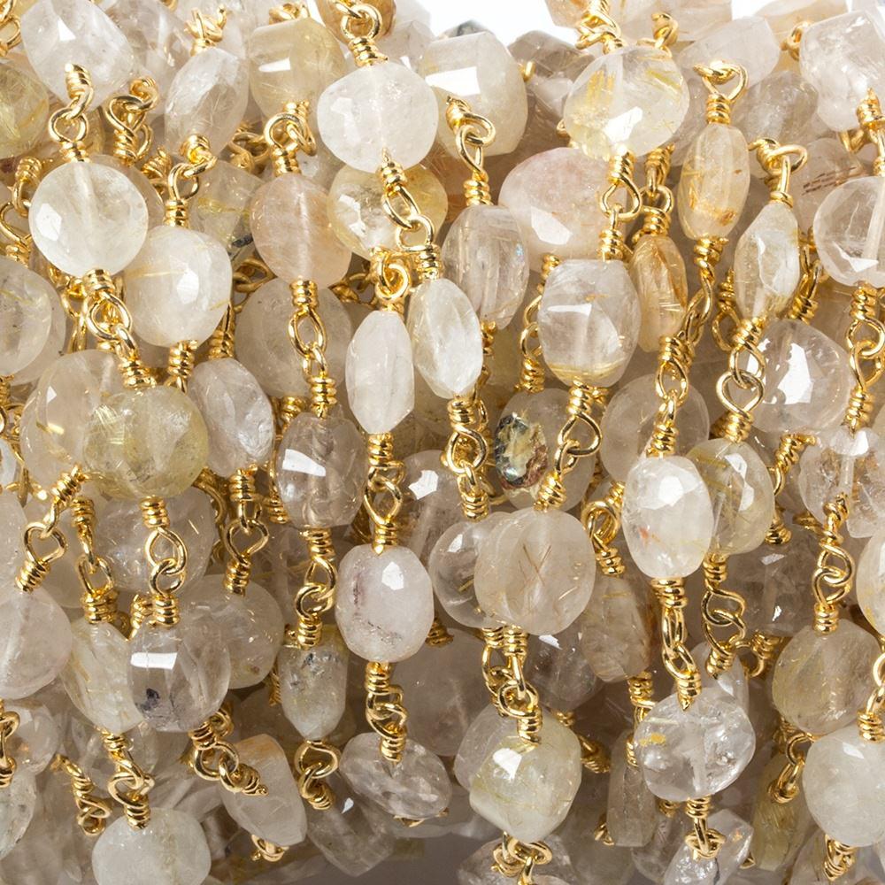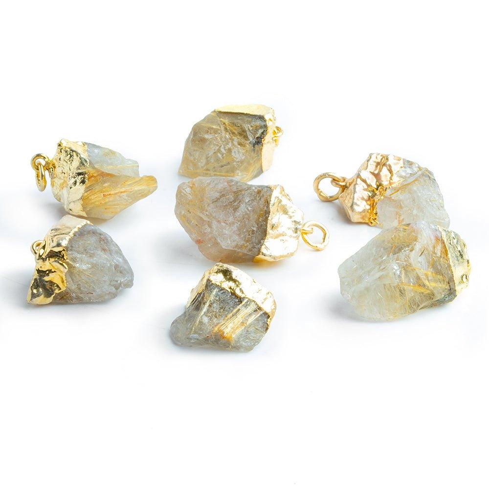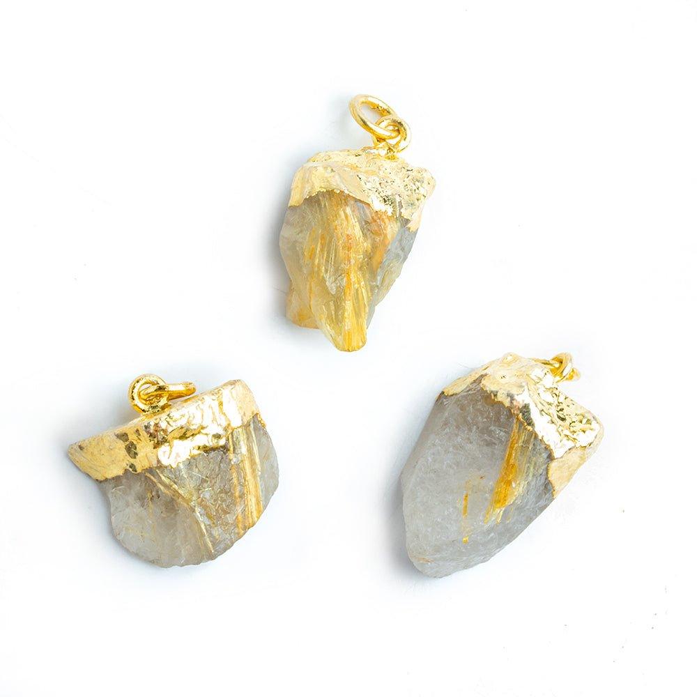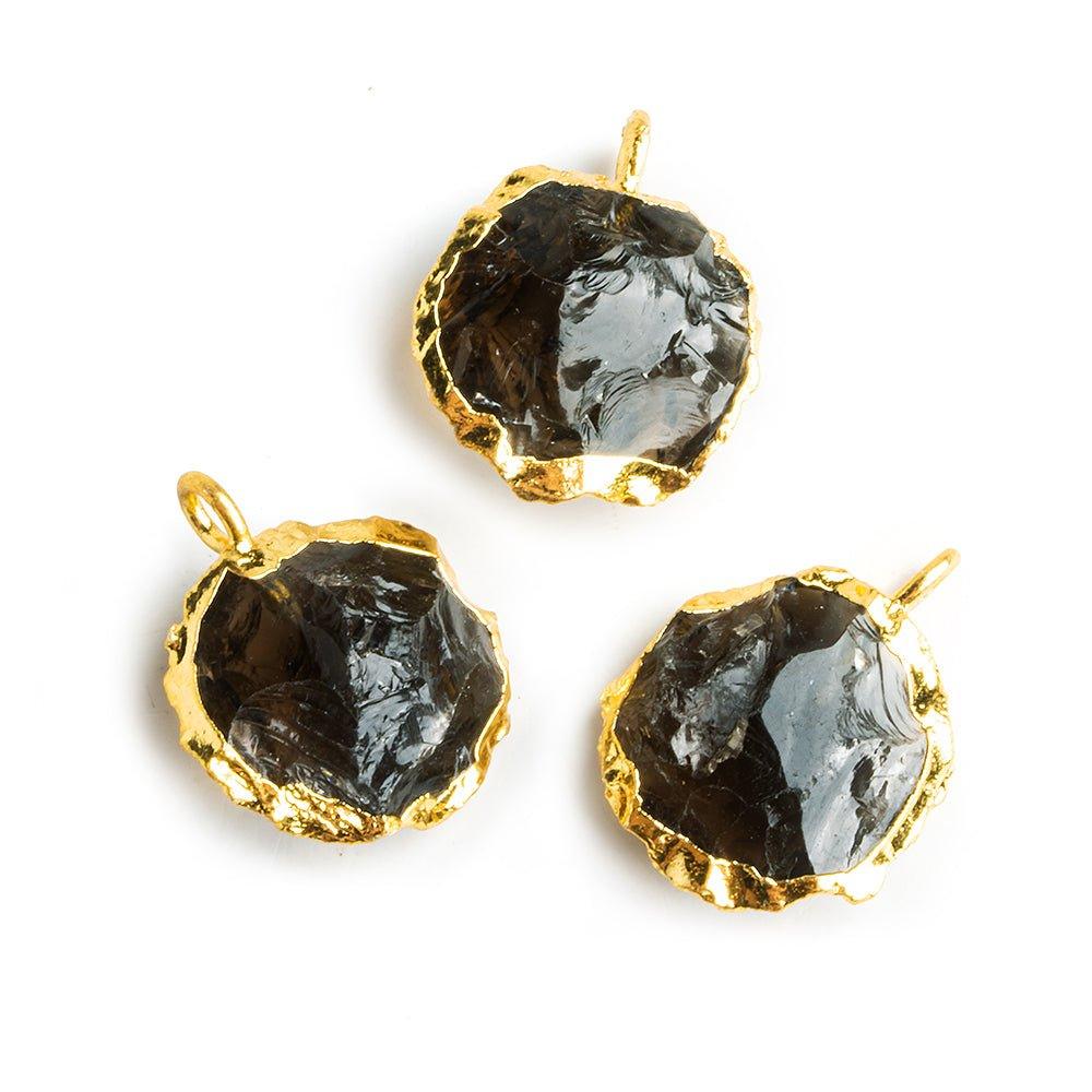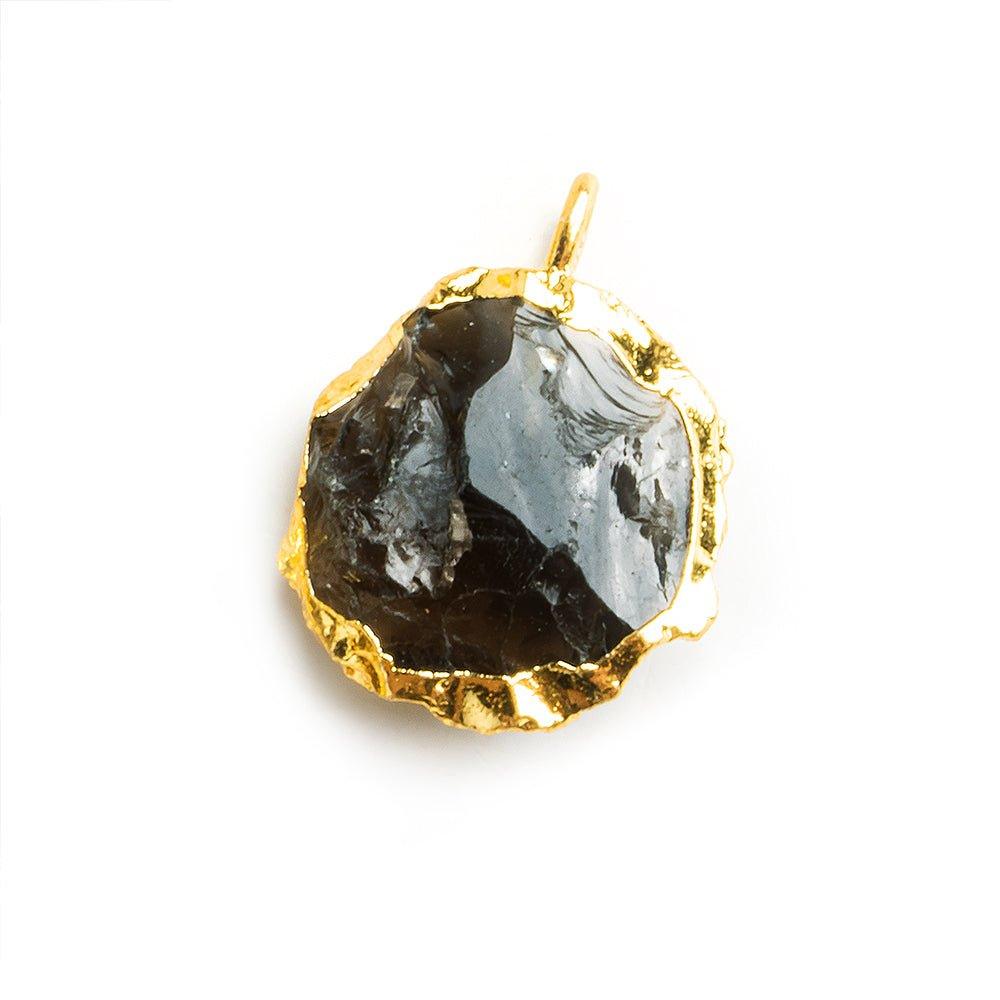 Gold Leafed Hammer Faceted Dark Smoky Quartz Rectangle Connector Bead 1 Piece