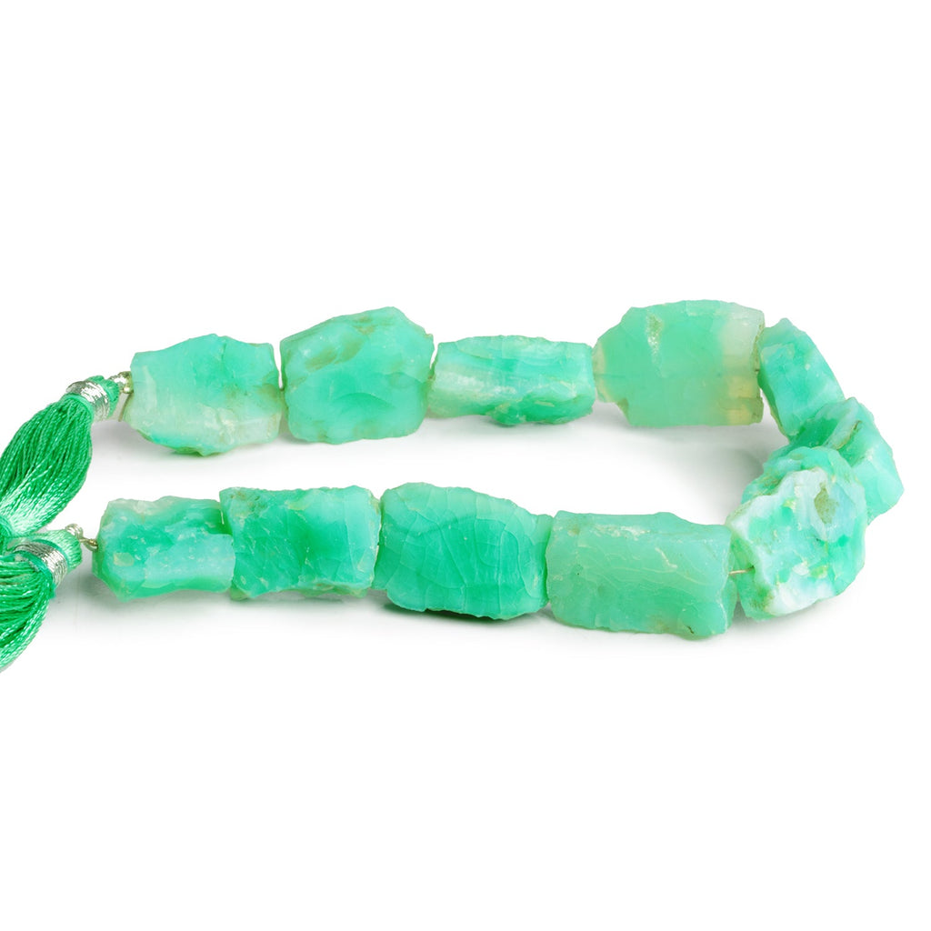 Beads measure about 16x11mm to 25x19mm. These sizable and striking beads show off the time-honored tradition of hammer faceting, whereby gemstones are struck to rough shapes that impart a hand-crafted, even folksy appearance. Our hammer faceted beads are coveted for their unique surface qualities that echo historical methods of Jewelry creation dating back before the age of precision cutting and modern faceting techniques. These bright, minty green beauties are destined to dazzle with rich colors and a versatile rectangle shape. Our Hammer Faceted pieces are perfect for use as focal beads or the mainstays of bold designs in necklaces, earrings and more.