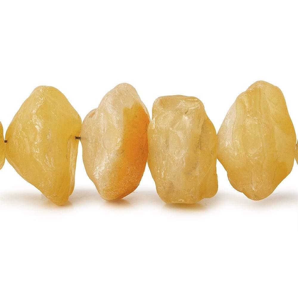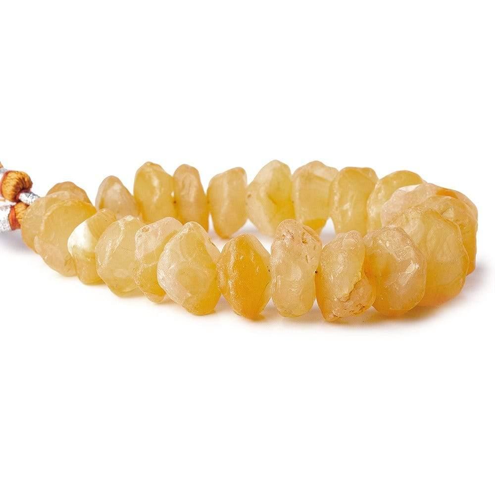 Dark Butterscotch Yellow Agate Tumbled Hammer Faceted Disc Beads show a vitreous luster on these ancient chip faceted rondelle shapes. The bodies are semi-translucent with a deeply saturated dyed browish yellow hue exhibiting internal characteristics.