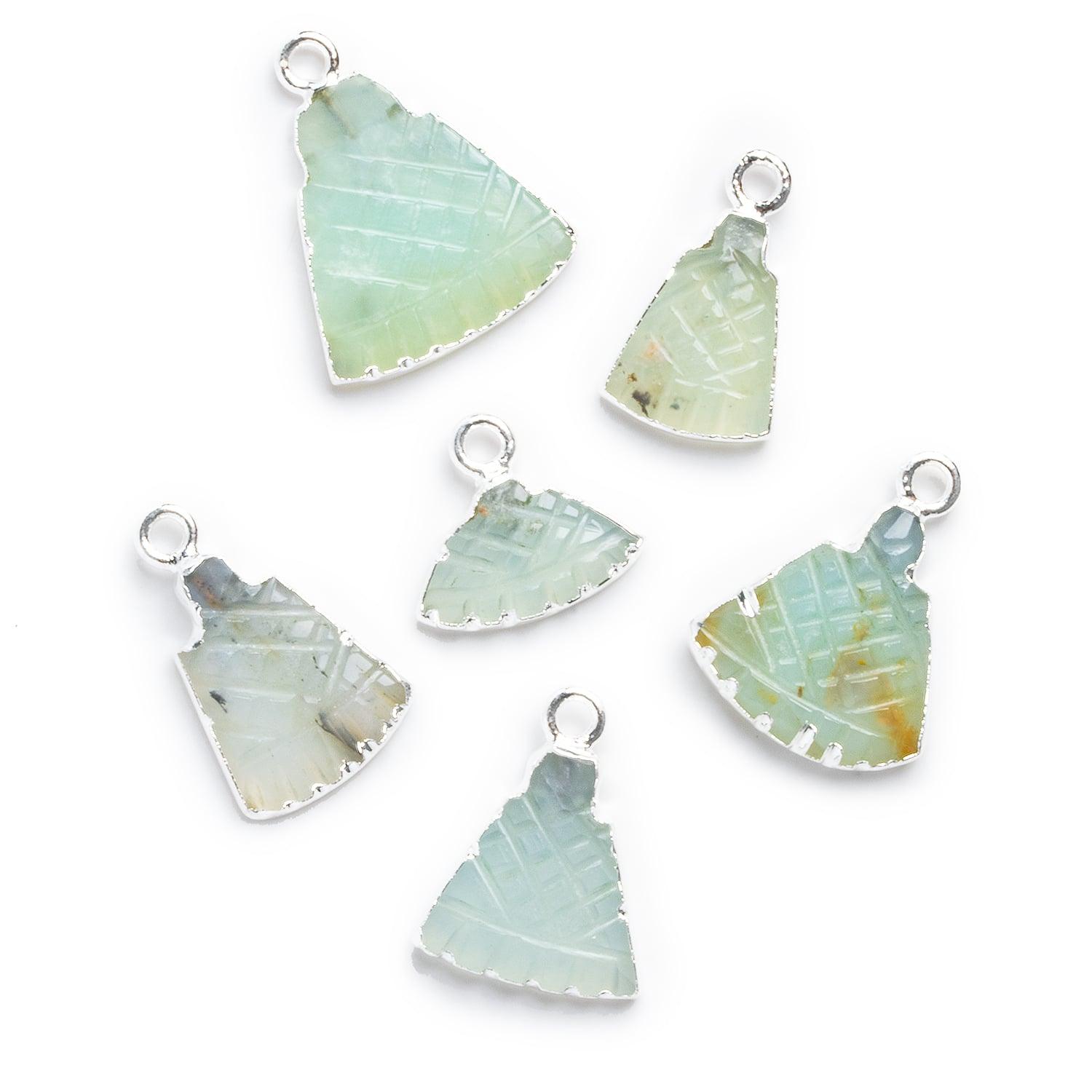 Silver Leafed Blue Peruvian Opal Carved Pendants - Lot of 6