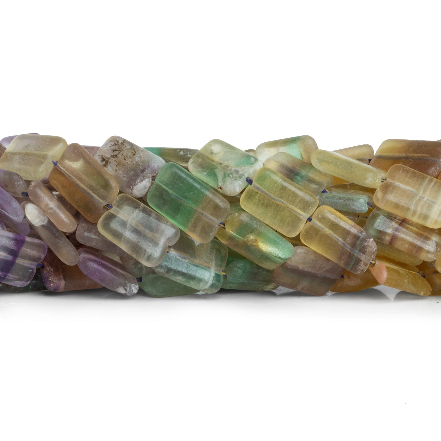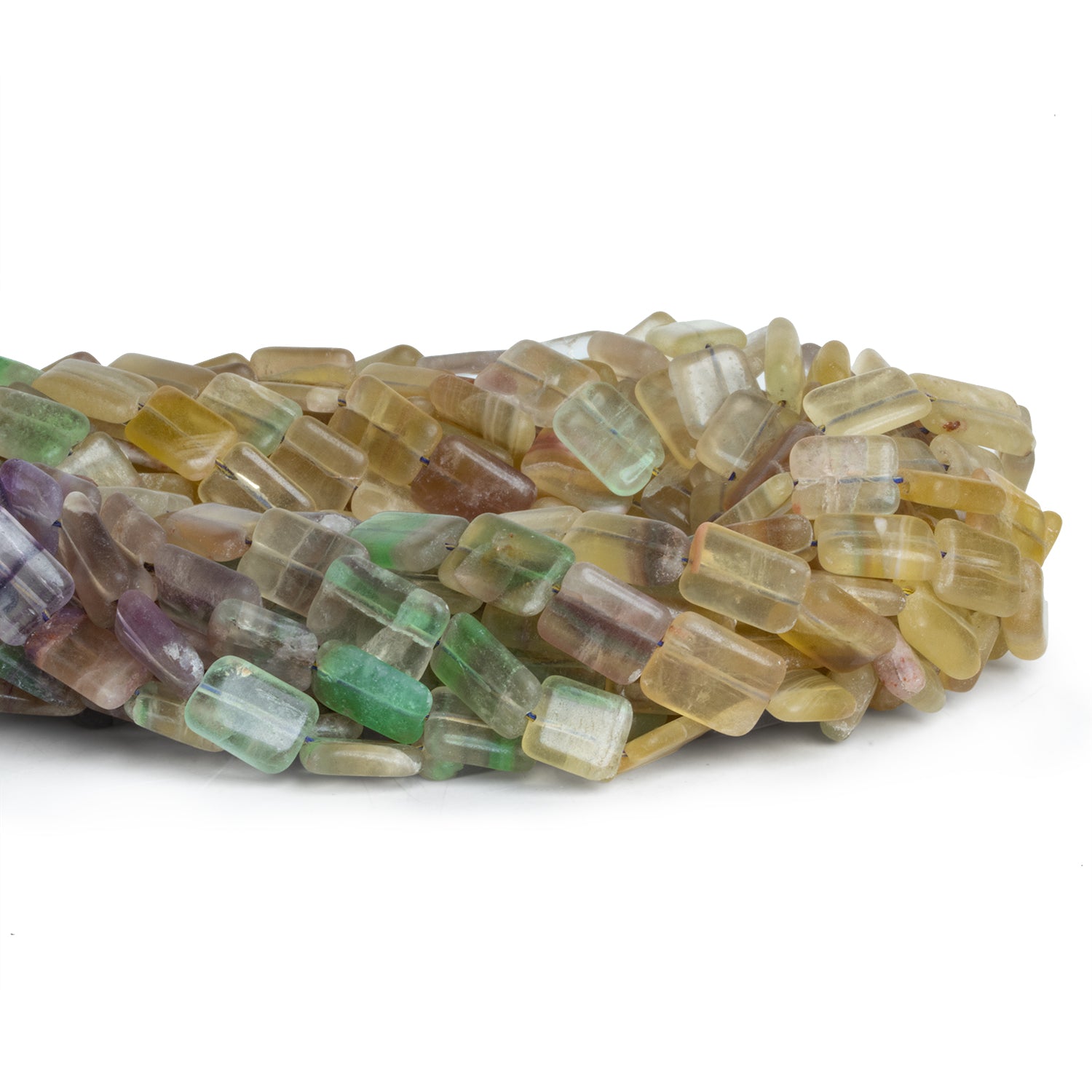 Beads range from about 10x7mm to 12x9mm. These curated strands feature a wide-ranging Fluorite color palette that mingles electric greens and yellows with darker purples, often accompanied by alluring banded patterns. These rounded rectangle beads show off relatively thin and translucent bodies destined to catch the eye in bold Jewelry Designs. Imbue your next piece with the striking natural tones of Fluorite perfect for necklaces, earrings and more.