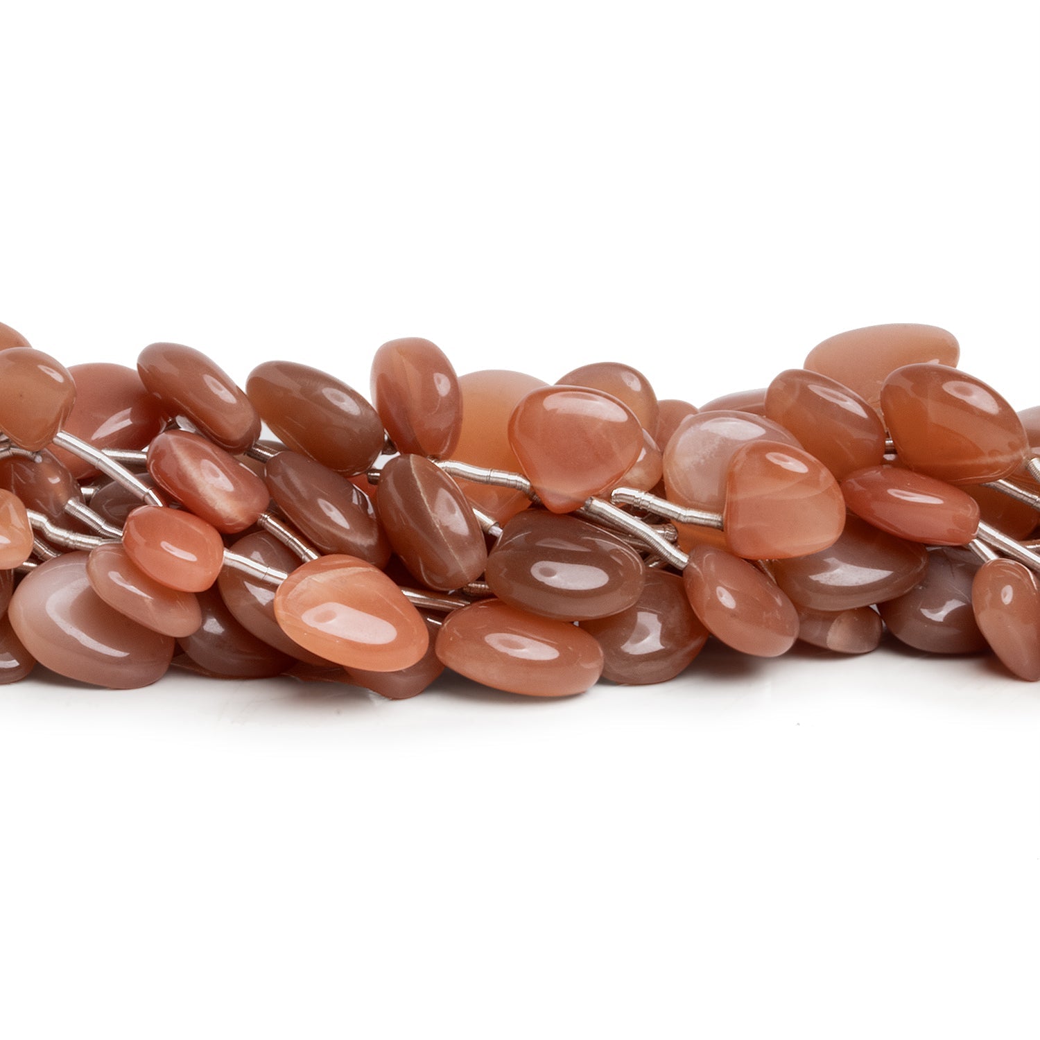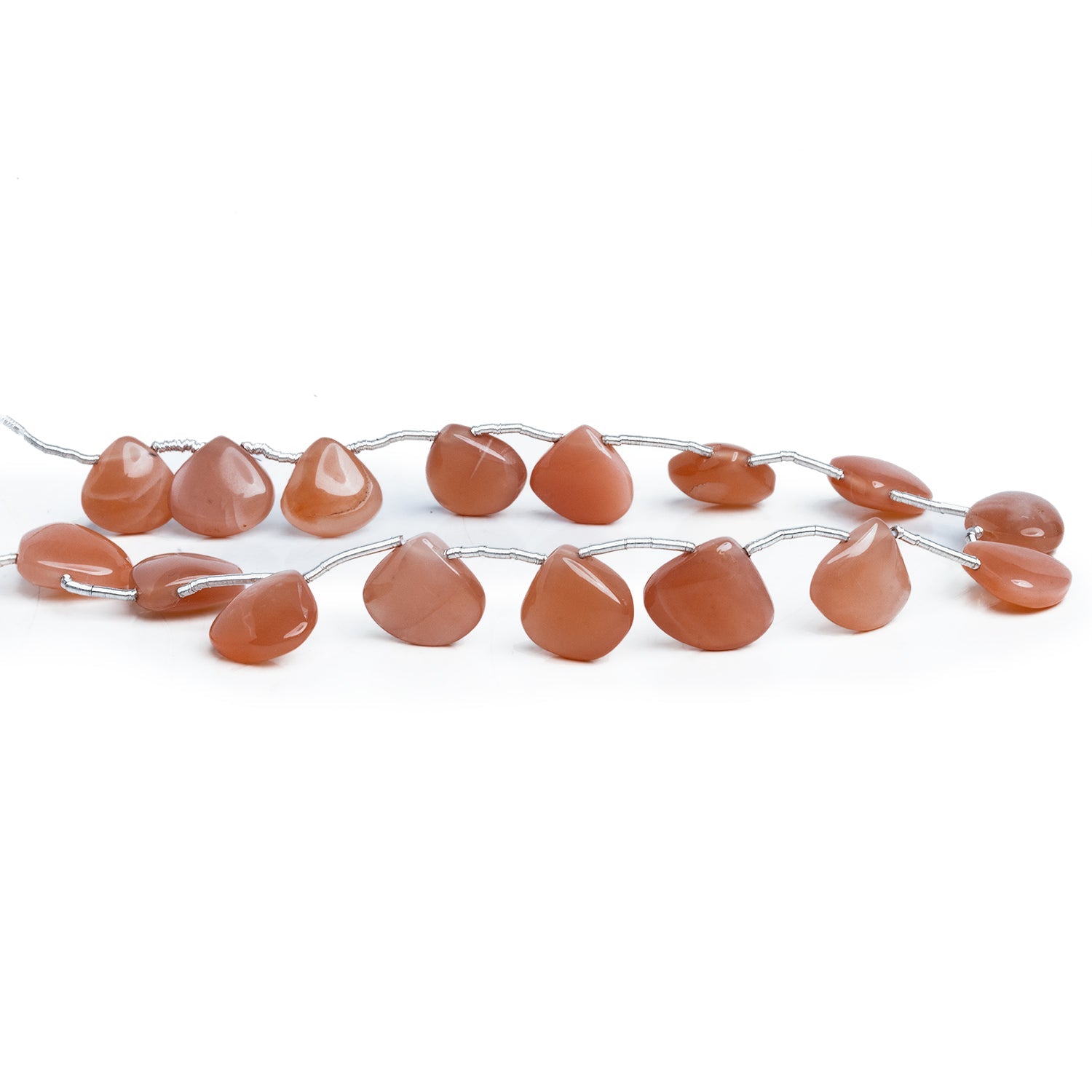 Our Reddish Peach Moonstone Plain Heart Beads exude a stunning charm with their rich peach tones and subtle shimmer. Their smooth polish and rounded shape accentuate the gemstone's natural flash and enhances modern and romantic jewelry designs alike.
