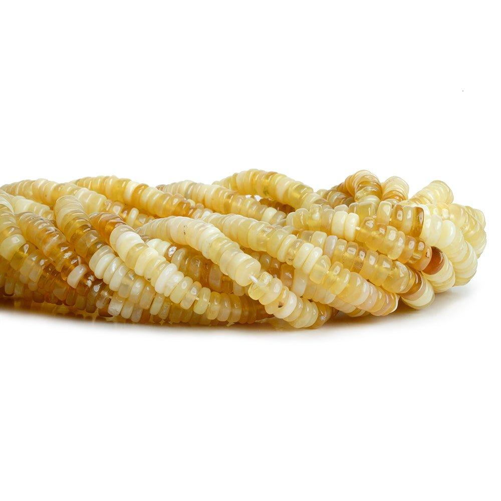 "Heishi" is a traditional American Indian name for discoidal shell beads that have been manufactured to have the same diameter, or tapering diameters. The name has been used for similarly-made beads of many materials. Turquoise heishi beads are the most-often-seen non-shell heishi, in a Native American context.