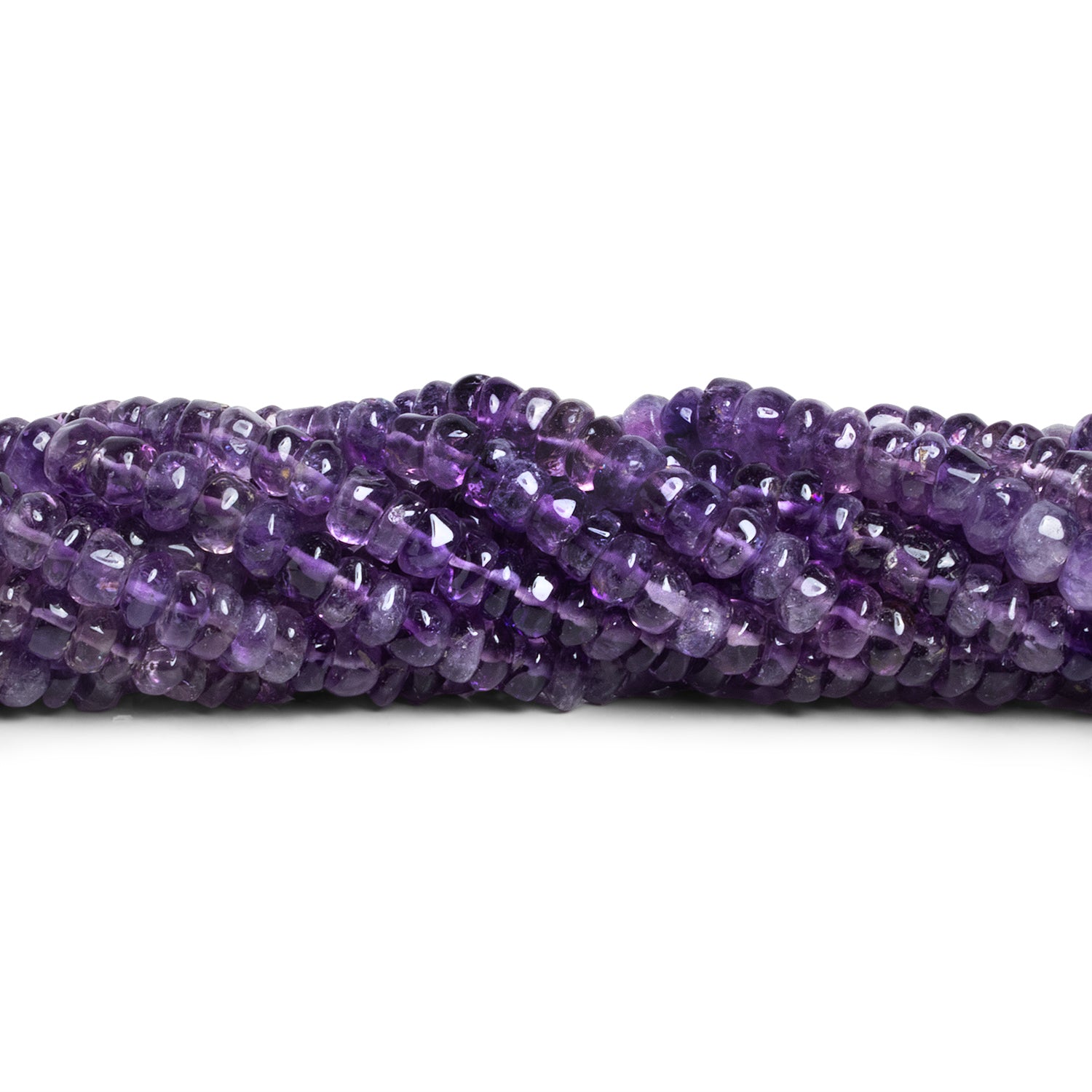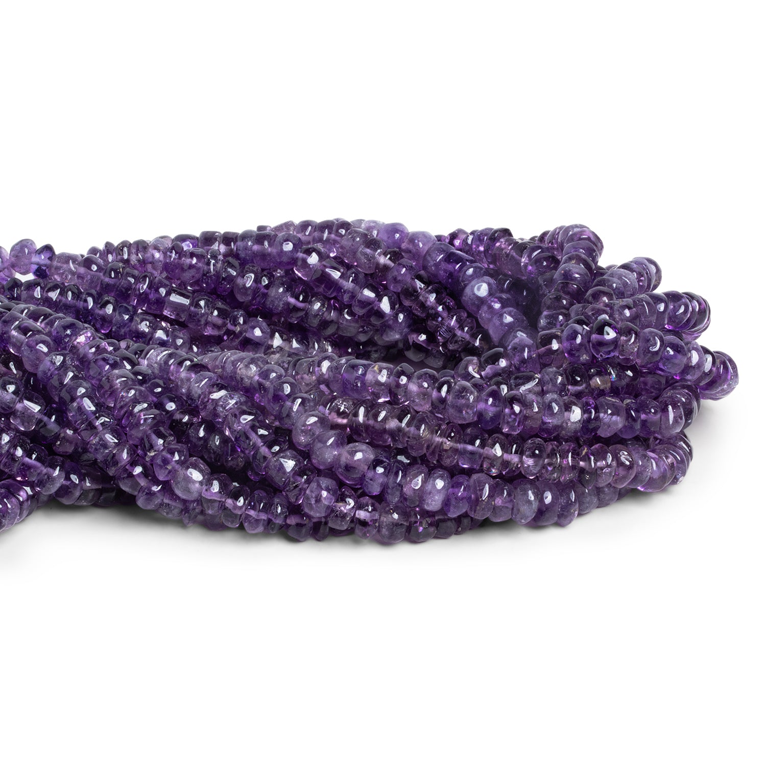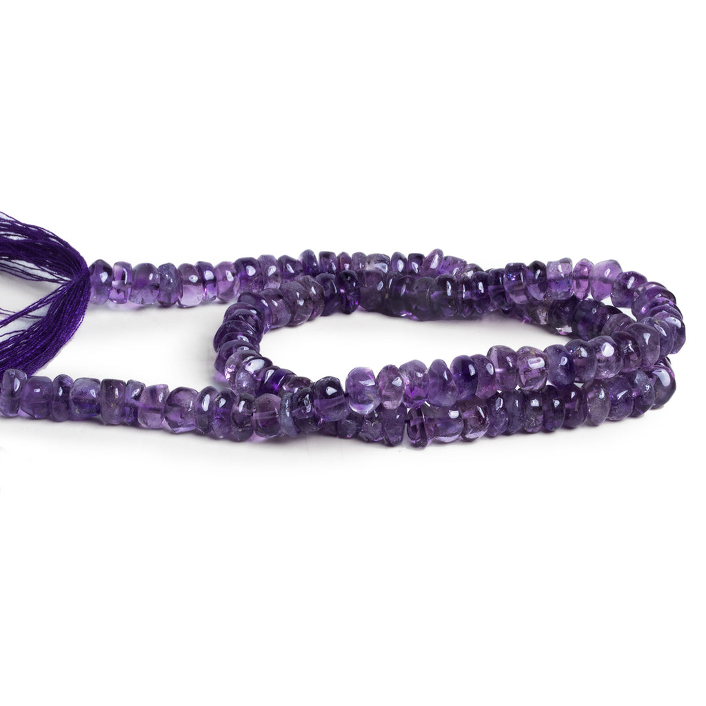 These Amethyst Plain Heishi Beads have a consistent diameter of 6mm. The translucent bodies are known for their vibrant color, unique to Amethyst. Each bead varies slightly in size and shape, following the traditional designs of the Kewa Pueblo people of New Mexico. Also referred to as Hishi, Heshi, and Heishe, the "hee-shee" shape is hand cut from natural Amethyst sourced from South America, creating interesting variations among each bead.