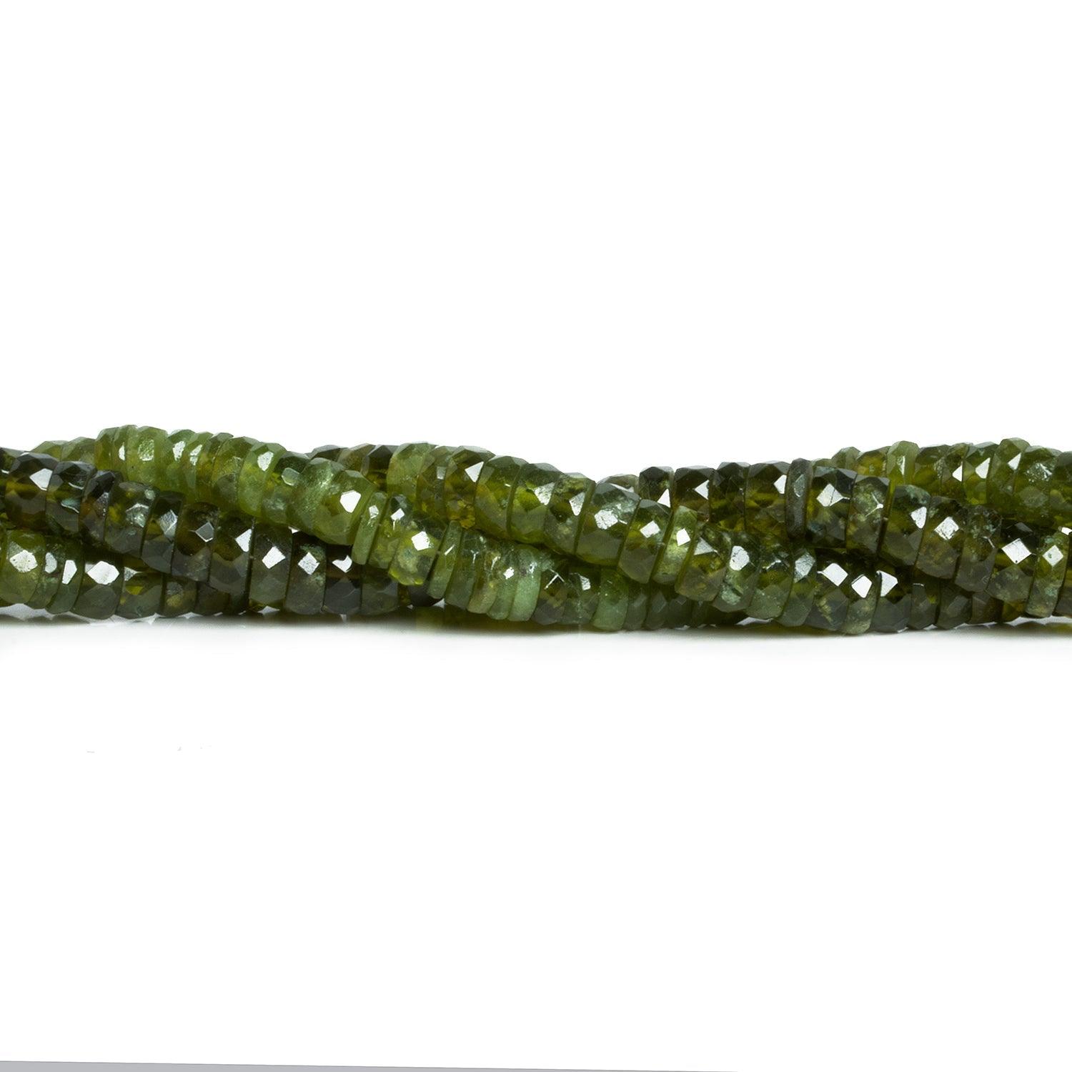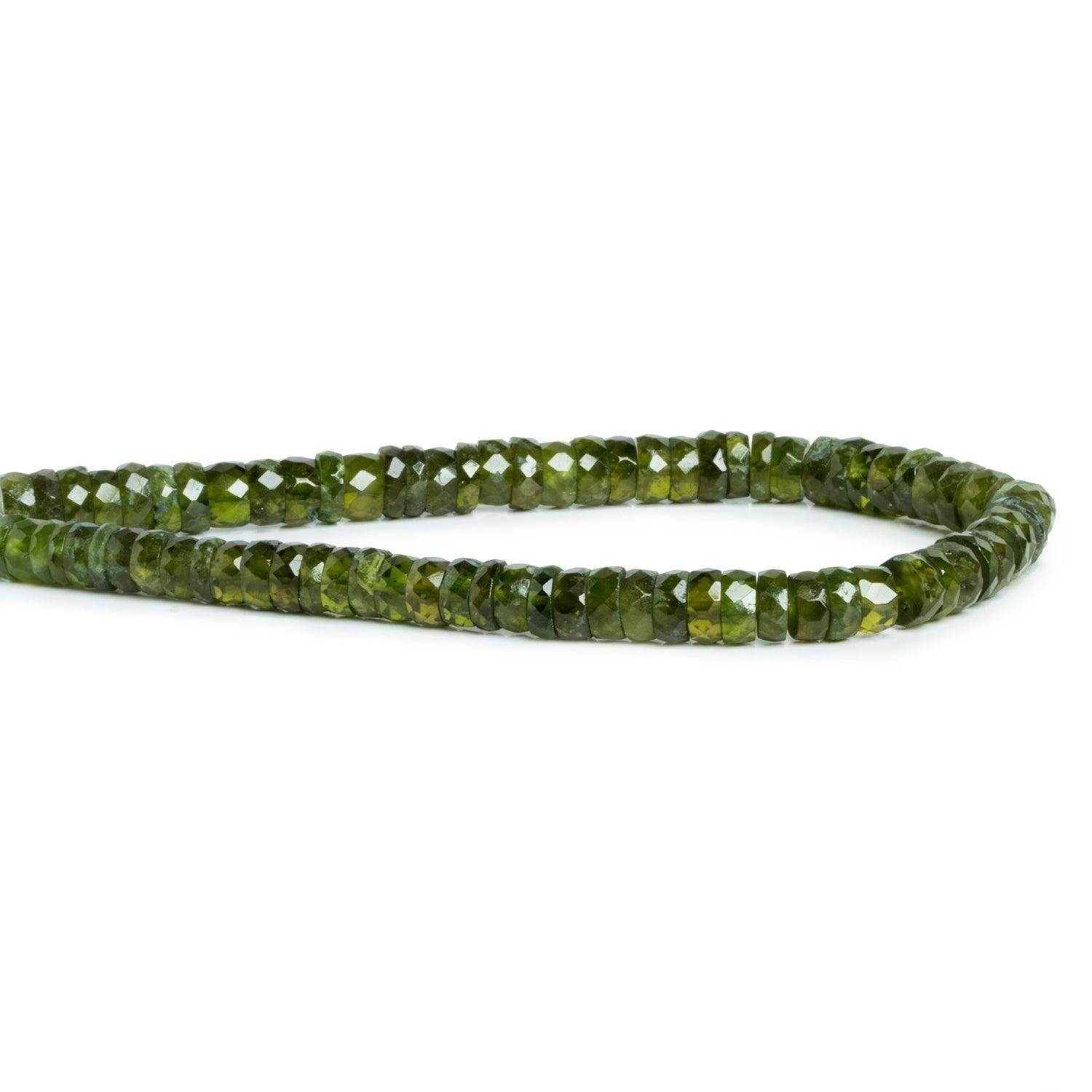 These beads have a diameter of 6mm to 6.5mm and a dark green color palette with some variation in thickness. Fans of Idocrase will appreciate the rich hues on this popular and eye-catching faceted shape. Idocrase, also known as Vesuvianite, was named after Mount Vesuvius in Naples, Italy, by A. G. Werner in 1795. The gem-grade quality is called Idocrase.