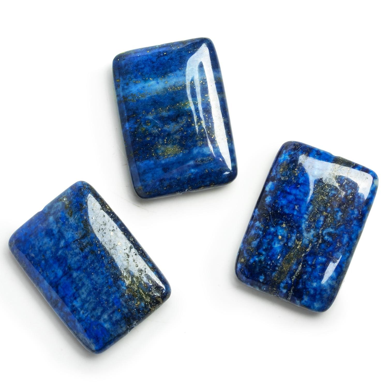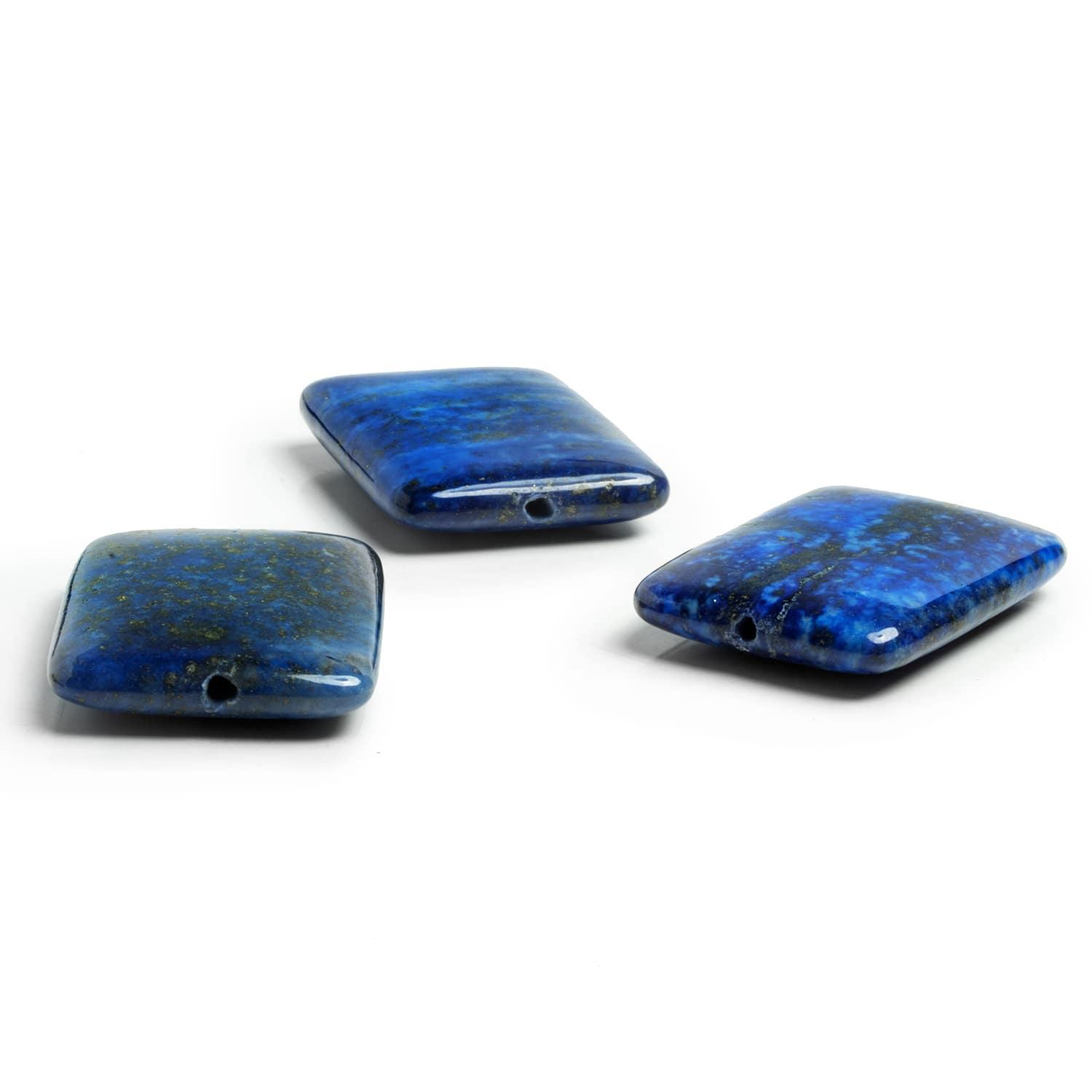 Beads average about 35x25mm average with a few mm of variation in either dimension. Expect a deep blue color showing full of sparkling pyrite inclusions. Egyptians prized Lapis gemstones of this color for their raw beauty and held Lapis gems in high esteem, as do we. These focal pieces have been color enhanced to give them a rich blue color.