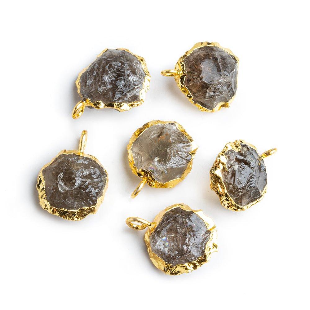 Gold Leafed Hammer Faceted Smoky Quartz Pendant Beads - Lot of 6