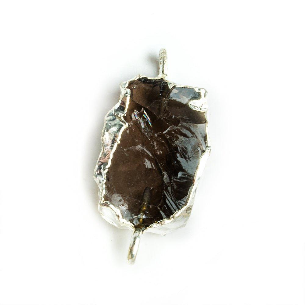 Silver Leafed Hammer Faceted Dark Smoky Quartz Connector Bead 1 Piece