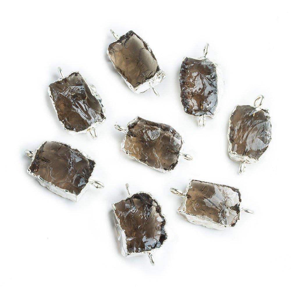 Silver Leafed Hammer Faceted Rectangle Connectors - Lot of 8