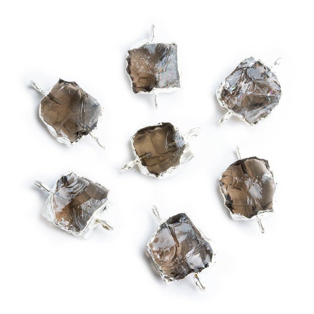 Silver Leafed Hammer Faceted Smoky Quartz Connectors - Lot of 7