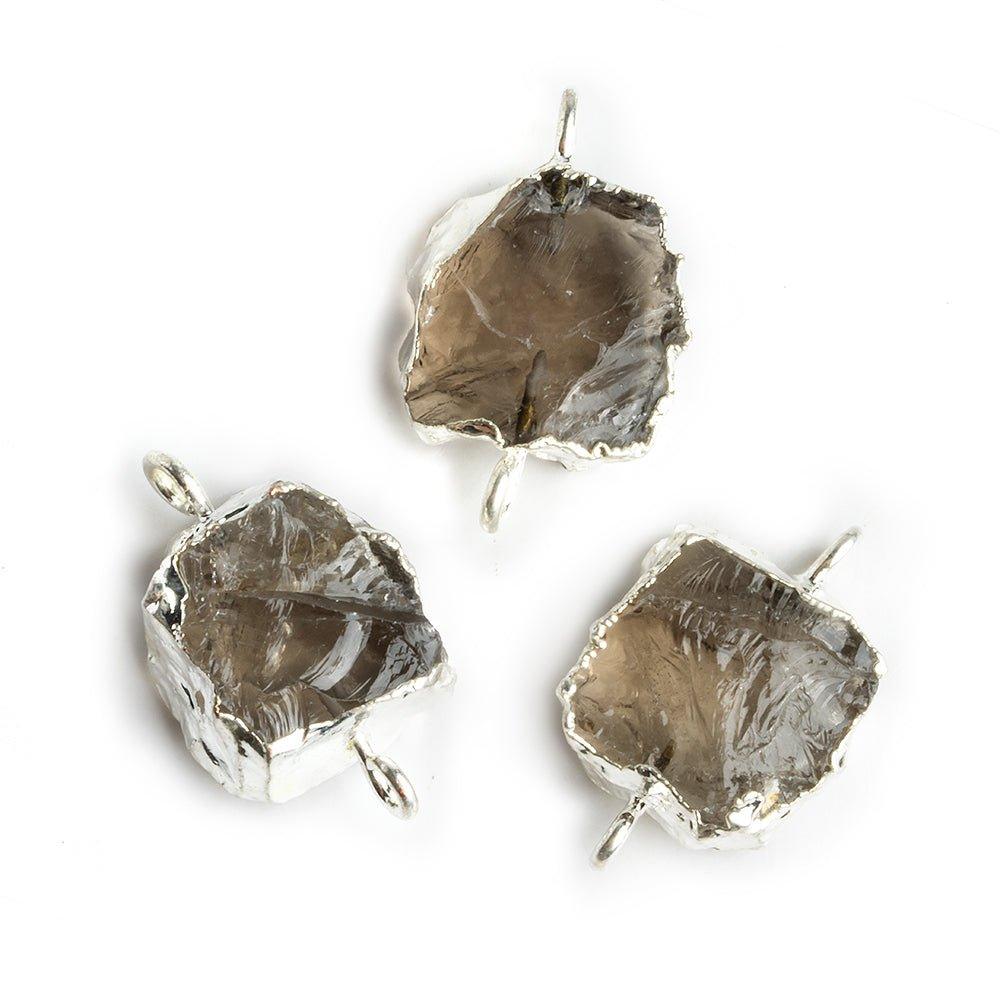 Silver Leafed Hammer Faceted Smoky Quartz Square Connector Bead 1 Piece