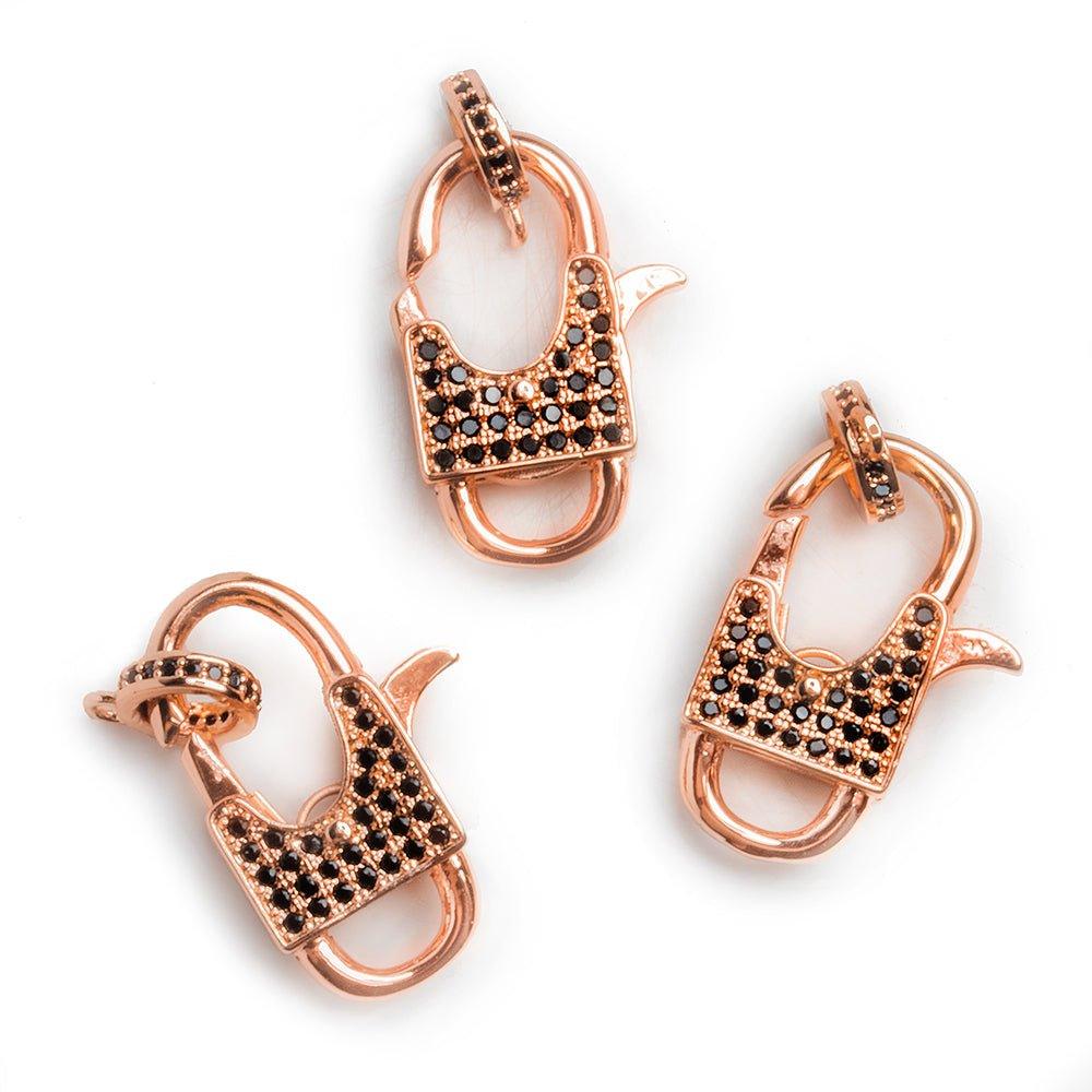 Rose Gold Tone Brass CZ Pave Lobster Clasp 1 Piece