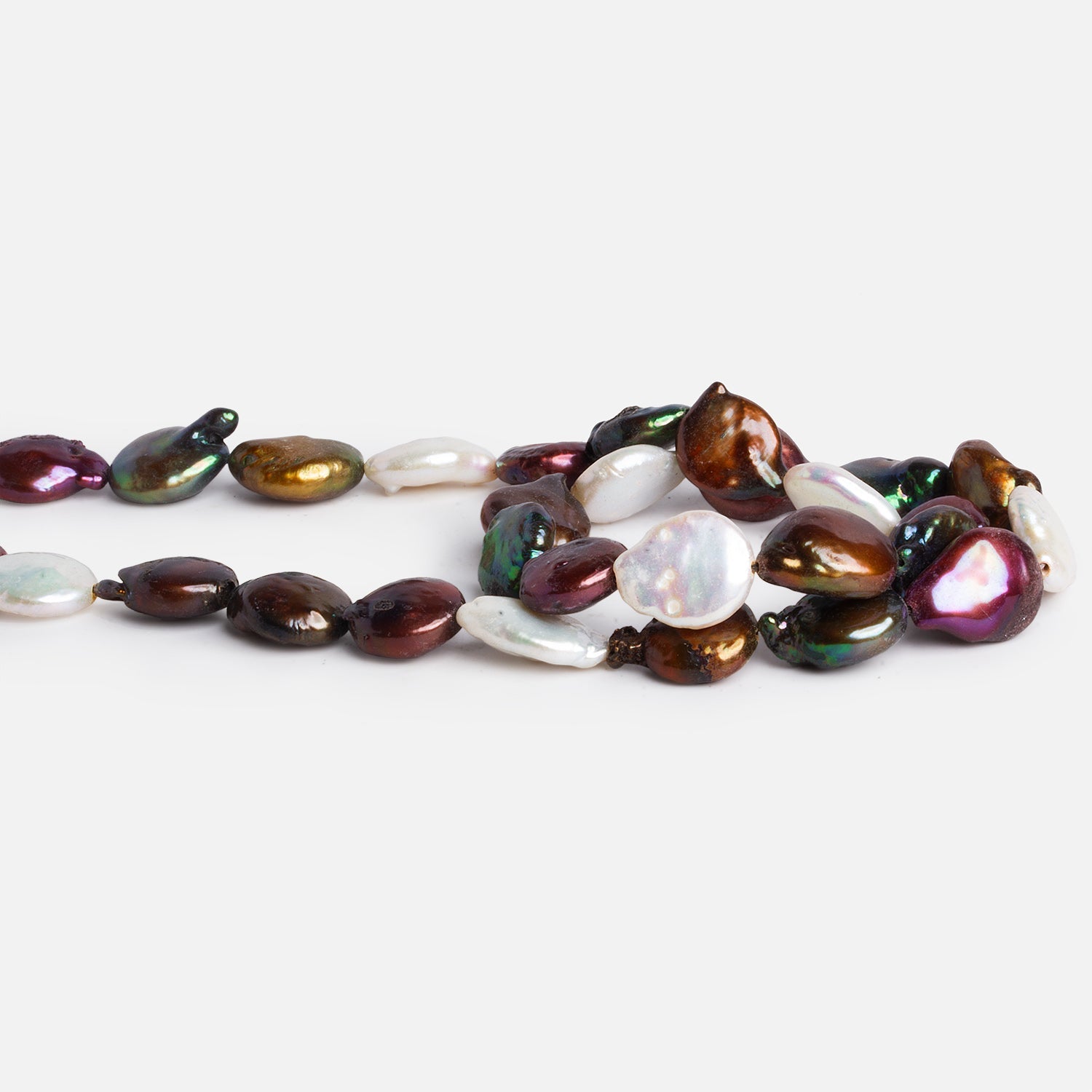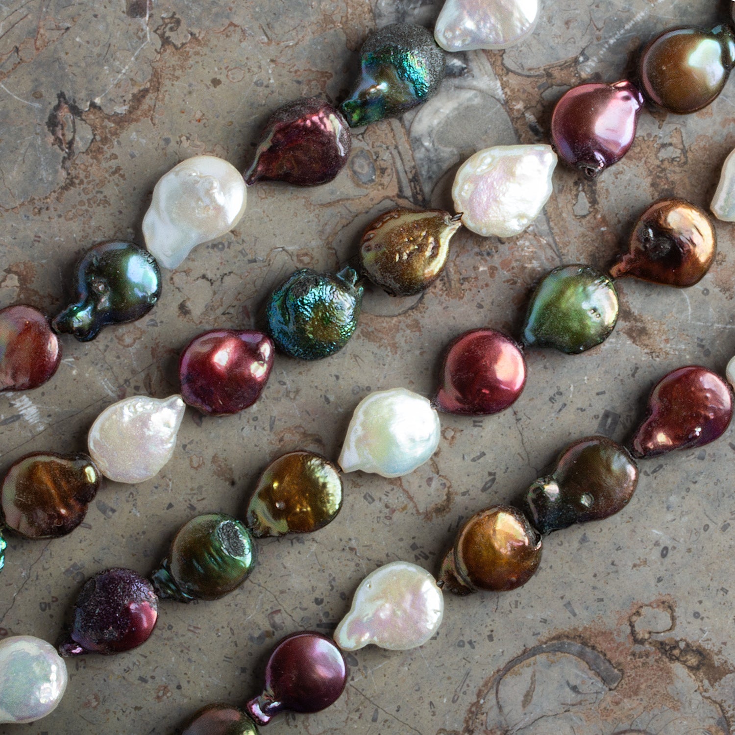 With smooth luster and naturally baroque charm, these pearls highlight both elegance and organic beauty. Their striking multicolor finish ensures that every strand is unique, offering endless design versatility. Whether used as focal pieces or blended into layered styles, these pearls bring timeless sophistication to artisan creations.