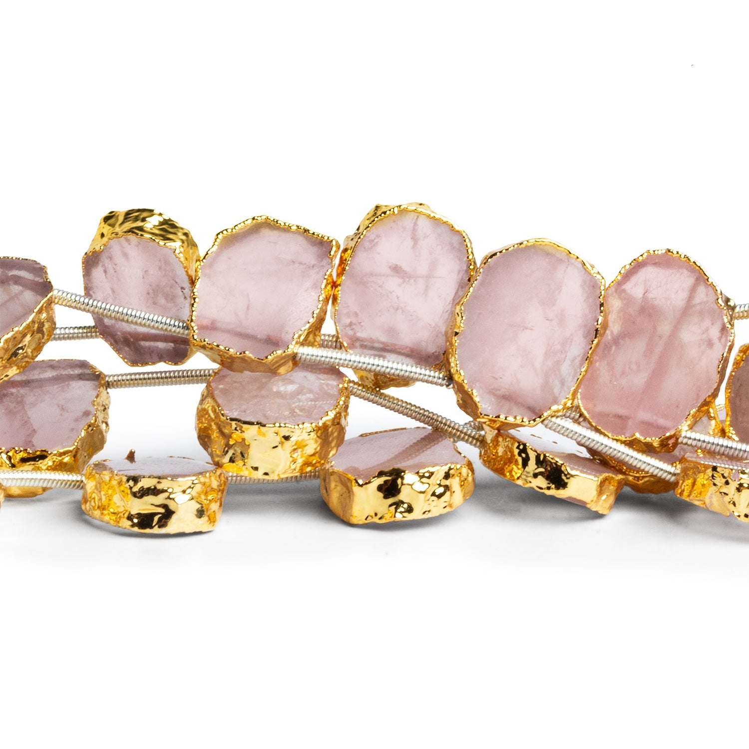 14x10mm Gold Leafed Rose Quartz Top-Drilled Slices 7.5 inch 11 beads