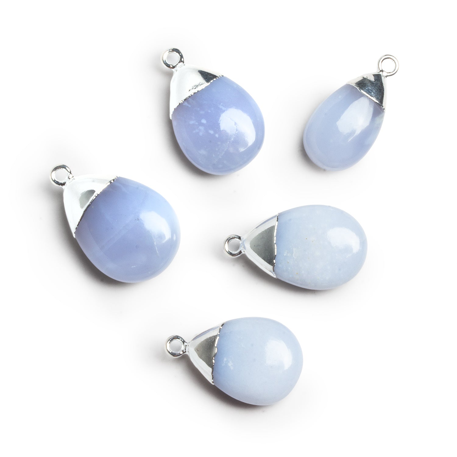 This natural Chalcedony pear pendant features a soft, clouded blue tone with gentle translucency and a smooth, polished surface that highlights the stone’s serene, luminous quality. Measuring approximately 24x15mm, the generous pear shape creates a graceful, substantial focal with a calm visual presence. Natural variations within the Chalcedony add subtle depth, ensuring each pendant is one of a kind.