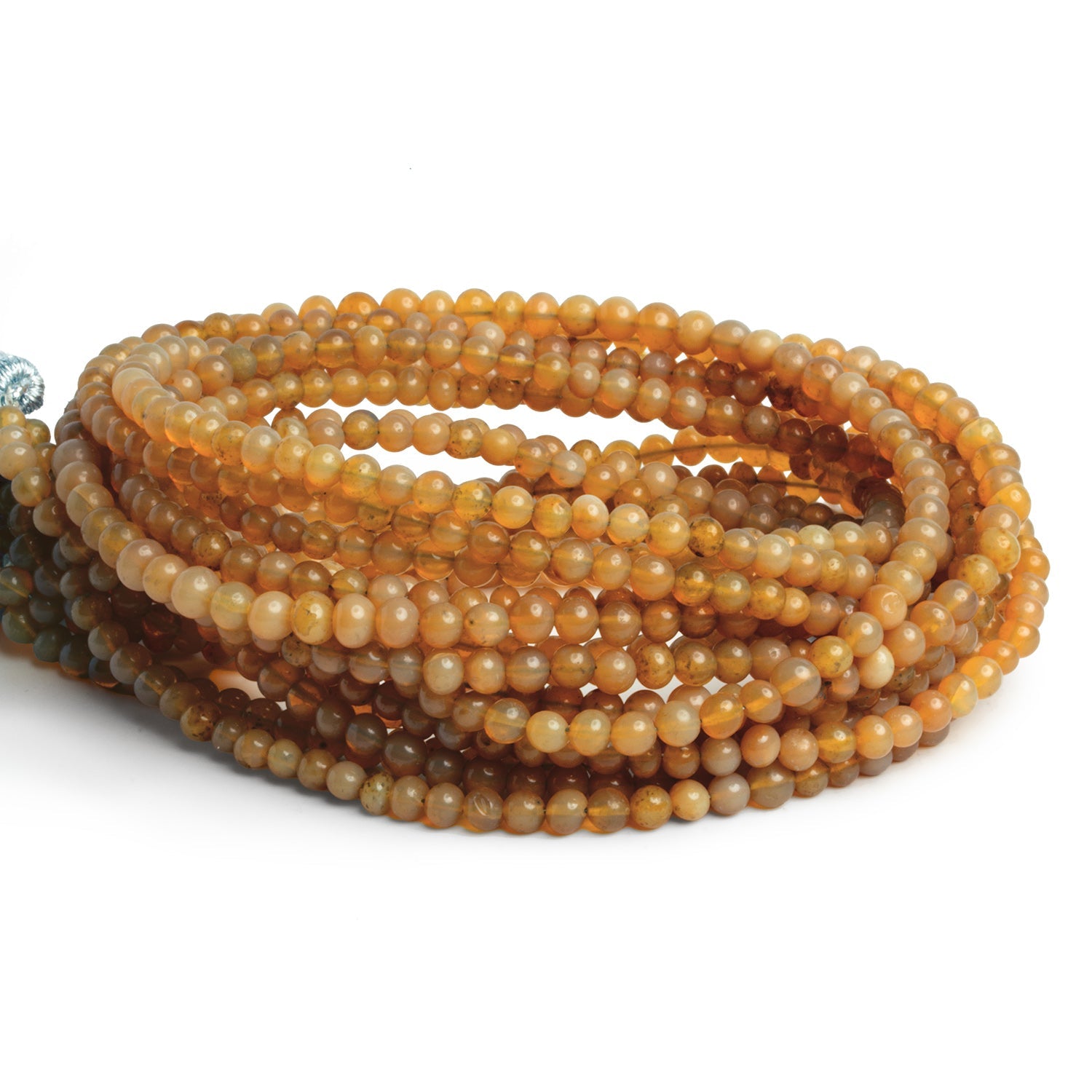 Ethiopian Opal is all about quiet fire. These 4mm plain rounds glow with warm honey, amber, and soft peach tones, showing subtle flashes and internal haze that feel organic rather than flashy. Their small size and smooth polish make them incredibly versatile—perfect for layering, spacers, or delicate full-strand designs where the color does the talking.