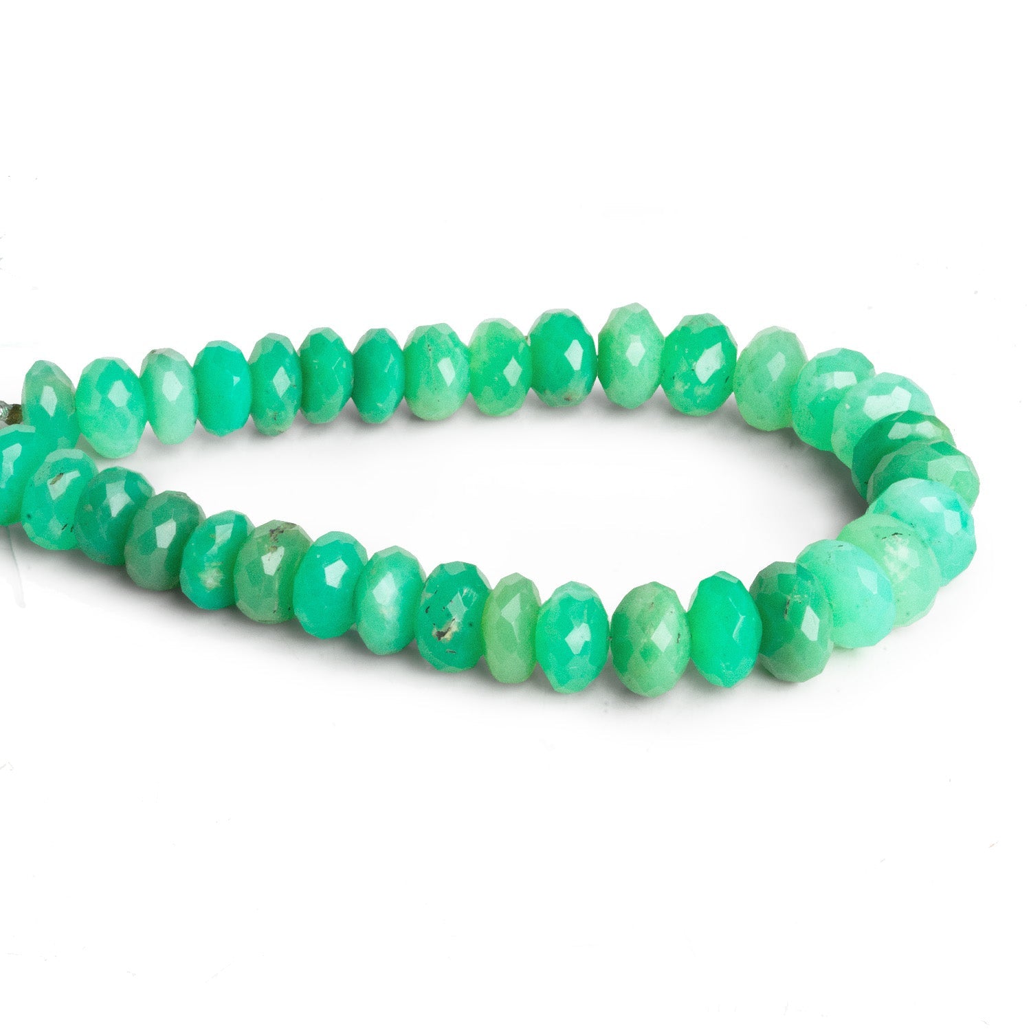 These vibrant Chrysoprase rondelles glow with a fresh, spring-green color that ranges from soft mint to richer apple tones, each bead alive with subtle translucency and gentle natural variation. The faceted surfaces catch the light beautifully, adding a lively sparkle while preserving the organic character of the stone. Natural inclusions and tonal shifts give the strand depth and authenticity, making every necklace or bracelet feel one-of-a-kind.