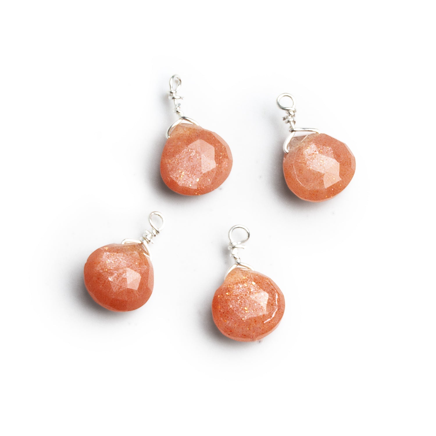 These soft, blush-glowing hearts bring a subtle shimmer that feels warm, romantic, and effortlessly wearable—perfect for adding a dreamy wash of color to necklaces, charms, and layered stacks without overpowering your design. Each set includes four matching 7mm faceted heart pendants, individually wrapped in sterling wire so you can use them together or spread them across multiple pieces.