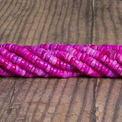 Beads measure about 5mm diameter with a 0.5mm drill hole. These opals show off a milky pink color palette predominated by creamy yellowish and caramel. Expect some eye-catching patterns & textures on these unique, curated strands.