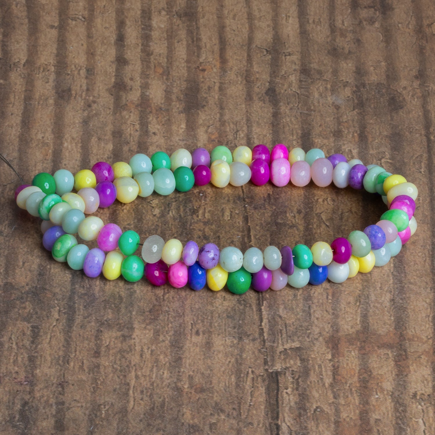 Beads measure about 6mm in diameter with a 0.5mm drill hole. These curated opal strands feature a colorful combination of lemon yellows, Spring greens, sea blues, pinks and more. Expect a Springy and contrast-laden range of tones perfect for use in everything from necklaces to earrings and bracelets.