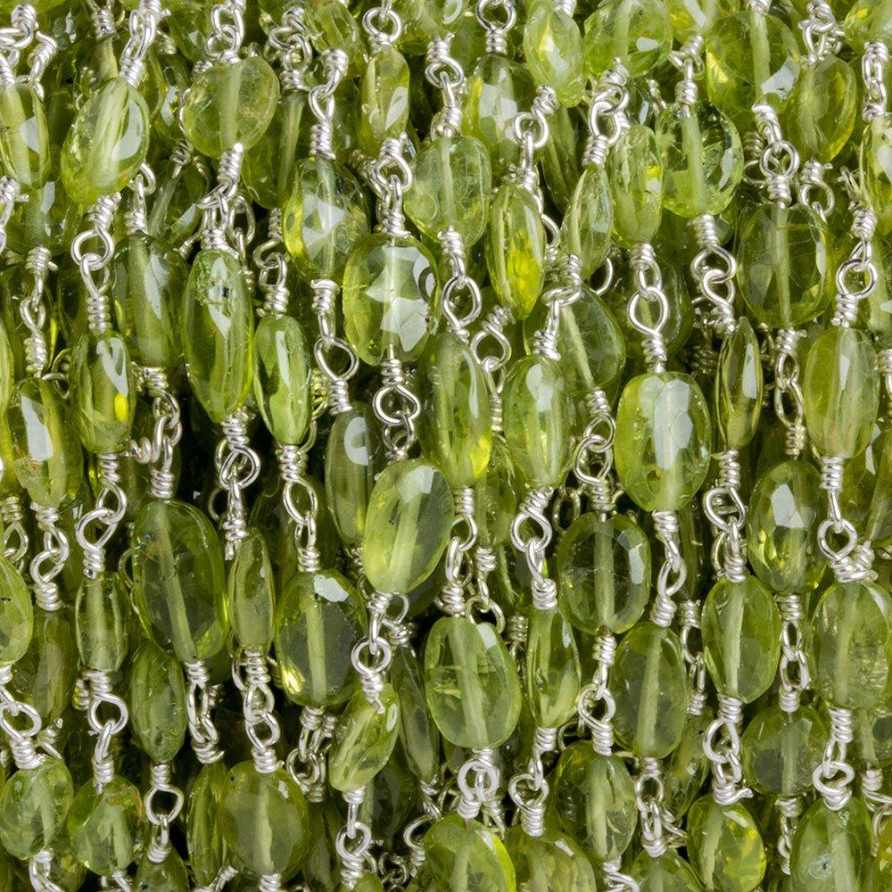 Peridot Faceted Oval Silver Chain by the Foot 25 pieces - The Bead Traders