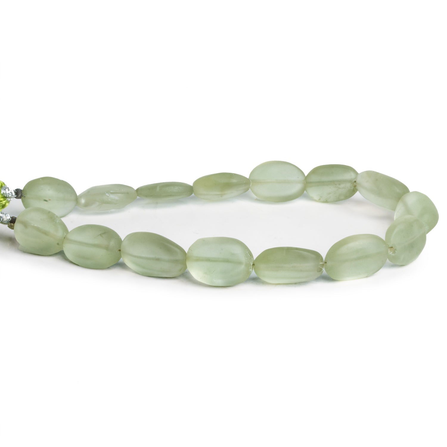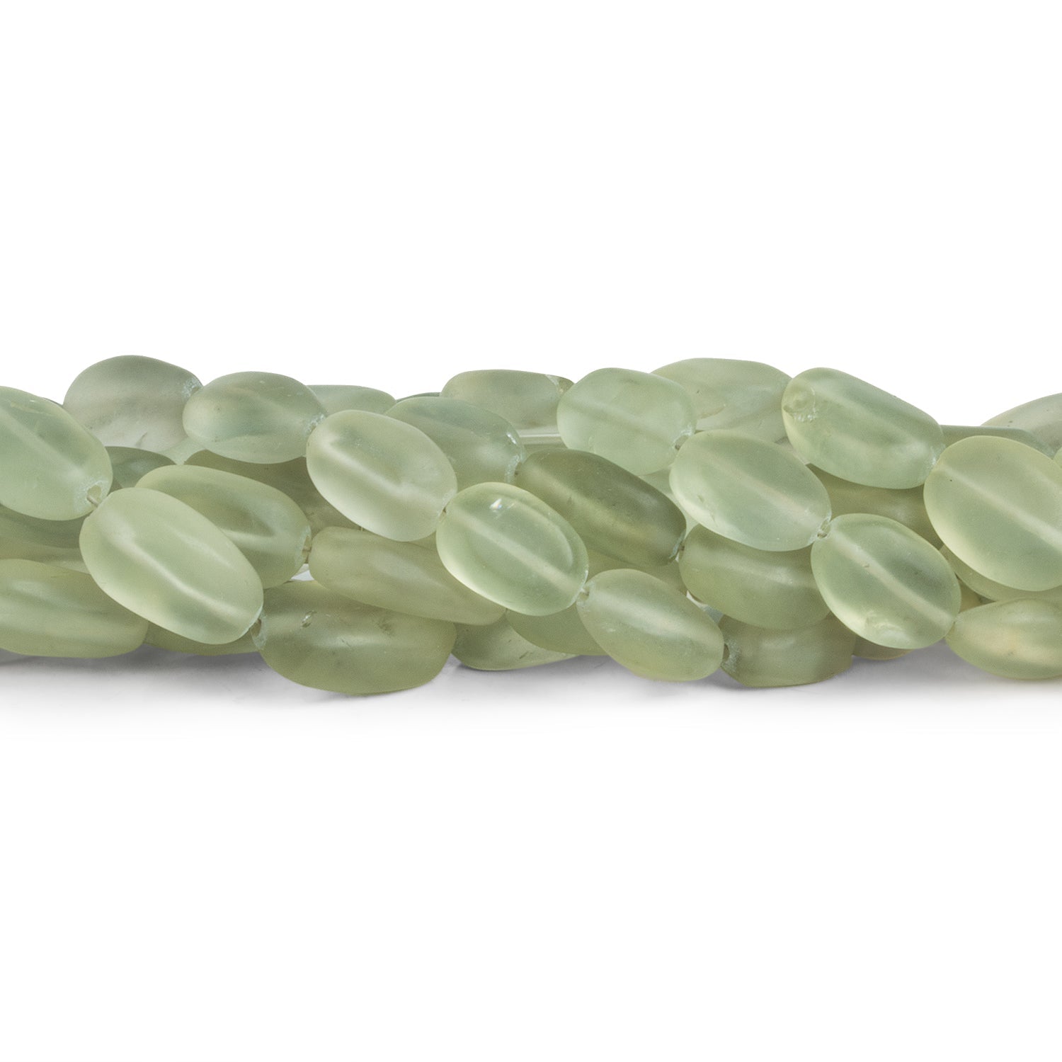 Beads range from about 10x7mm to 17x15mm. These lovely Prasiolite pieces feature an elongated oval shape with a light green tone and softened appearance courtesy of an exquisite matte finish. Expect a consistent look in color, lightness and clarity across and between strands while size may vary on and amongst strands. Fans of Prasiolite should jump on this high-quality offering, perfect for use in a wide range of Jewelry Designs.