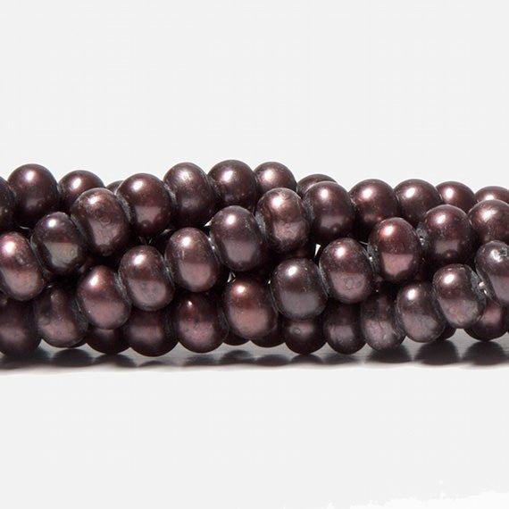 Eggplant Center Drilled Button Freshwater Pearls 16 inches with 120 beads per strand which measure approximately 5mm with a standard drill hole diameter.