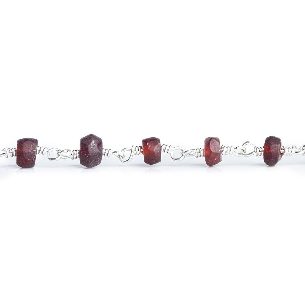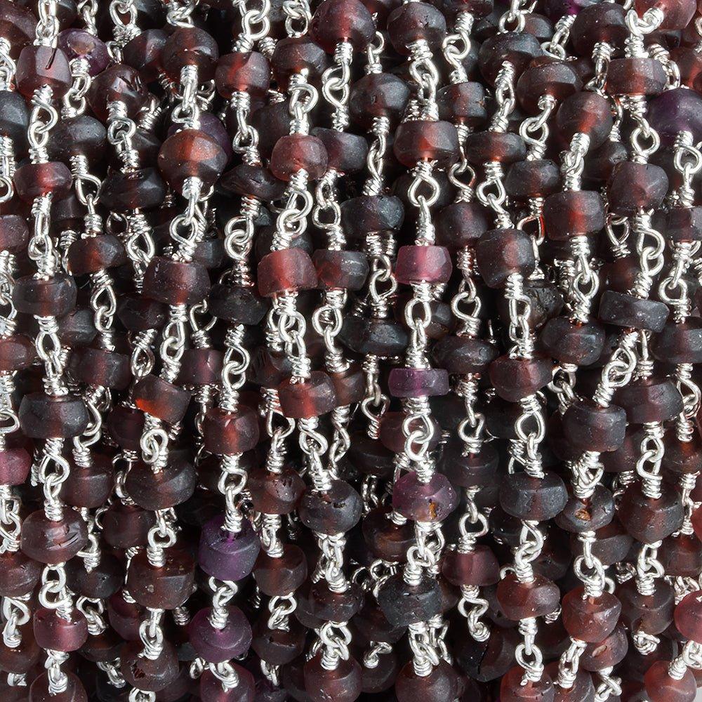 Matte Garnet Plain Rondelle Silver Chain by the Foot 37 pieces